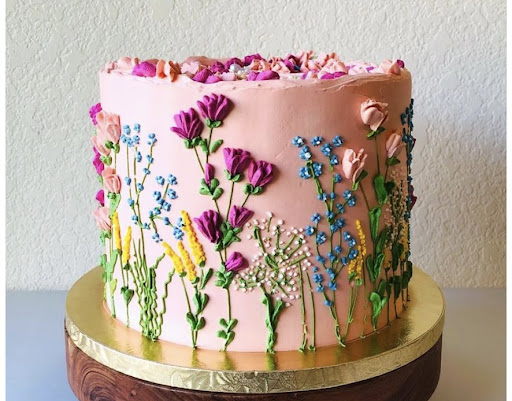 The buttercream is also super thick on this cake. I don’t know if they like roll it out like fondant and then put it on here, but do...