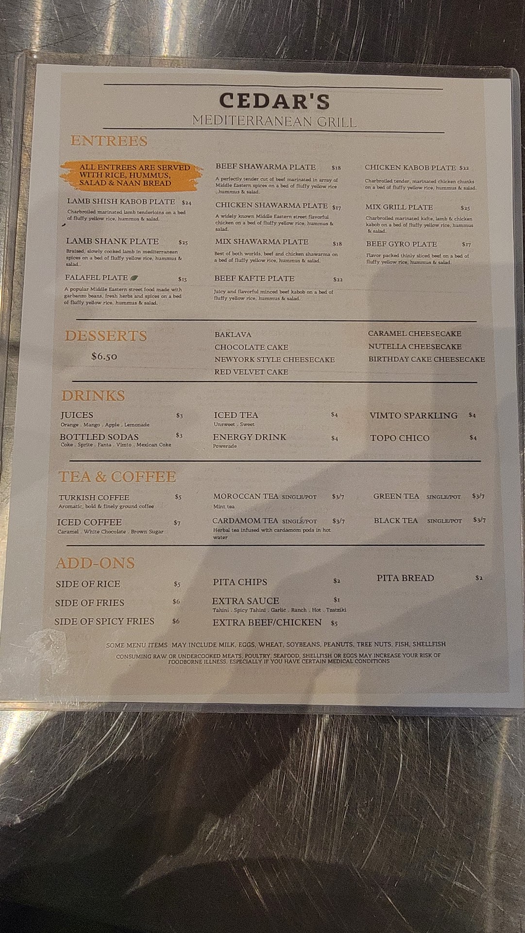 Sorry...probably way too much detail, but if you want middle eastern/mediterranean food in this area, Cedar is...