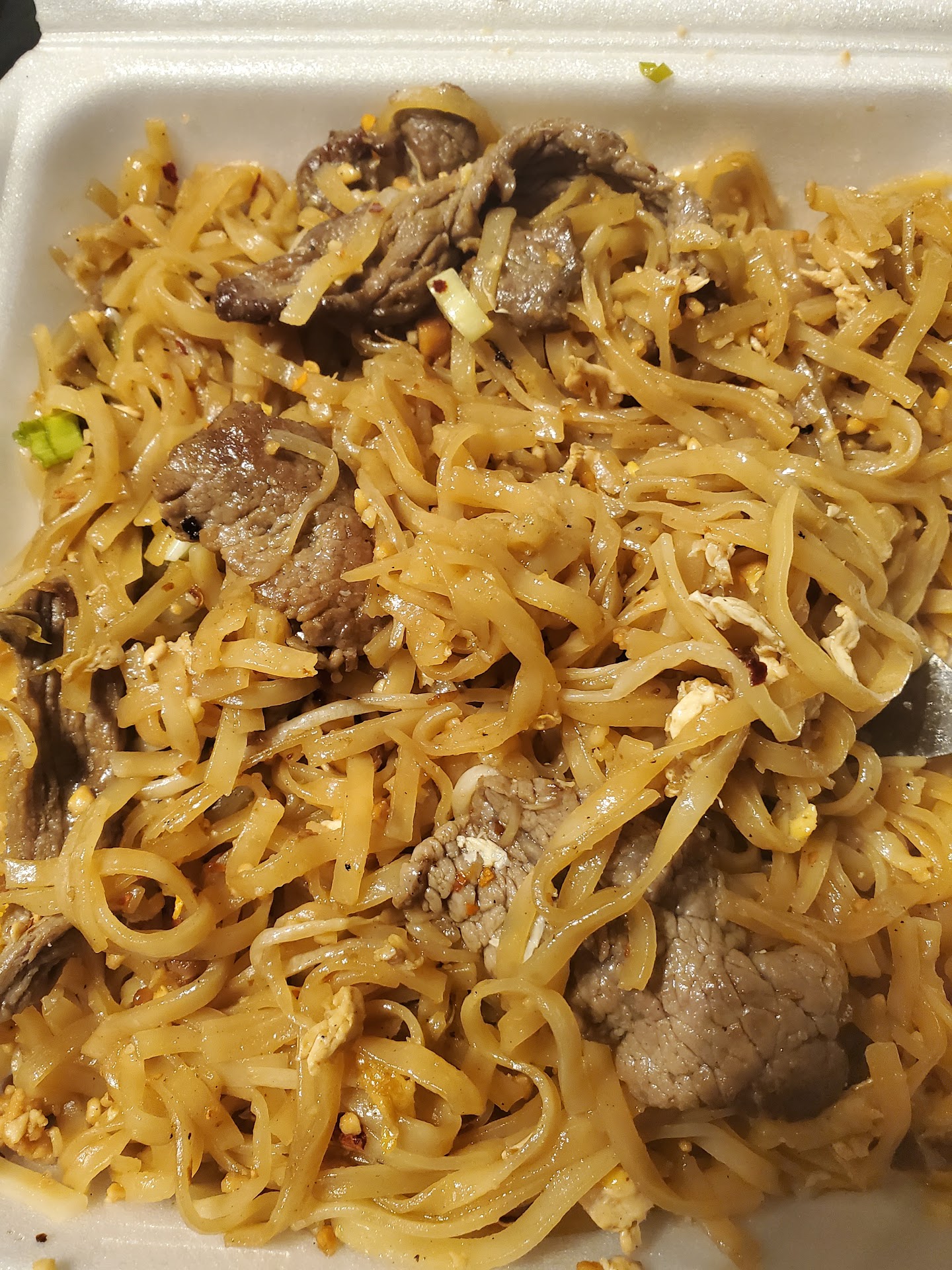 Read moreFood here is mediocre. I got the pad Thai, pad see ew, fried rice, and beef salad. The pad Thai and pad see ew tasted okay. It wasn't bad at all but wasn't the best Thai food I ever ate. I think they need to focus on getting better rice noodle or switch to a different brand because the smell of the rice noodle is very smelly and the aftertaste is overpowering the dish. This could easily be fixed by switching to a different brand of rice noodle or getting fresher ones. The fried rice was actually decent but nothing to brag about.