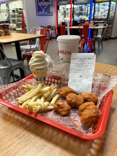 Walking around Walmart, you can burn calories. Just when we were going to leave, we could smell the food from Charley's. We saw the restaurant and gave it a try. My wife ordered the Chicken cheese steak and I ordered the Philly Cheese Steak. The food was good. Not bad for fast food. I ordered the small because I'm counting calories ( pfft, yeah right😏) and it was the perfect size. The bread had a light crush on the surface and soft in the middle. I guess you can call it Flakey. The flavor of the meat 🍖 tasted good. The fries are thick and not a lot of salt. It was a hit with my wife and I. We both left full. Our date was over. Time...