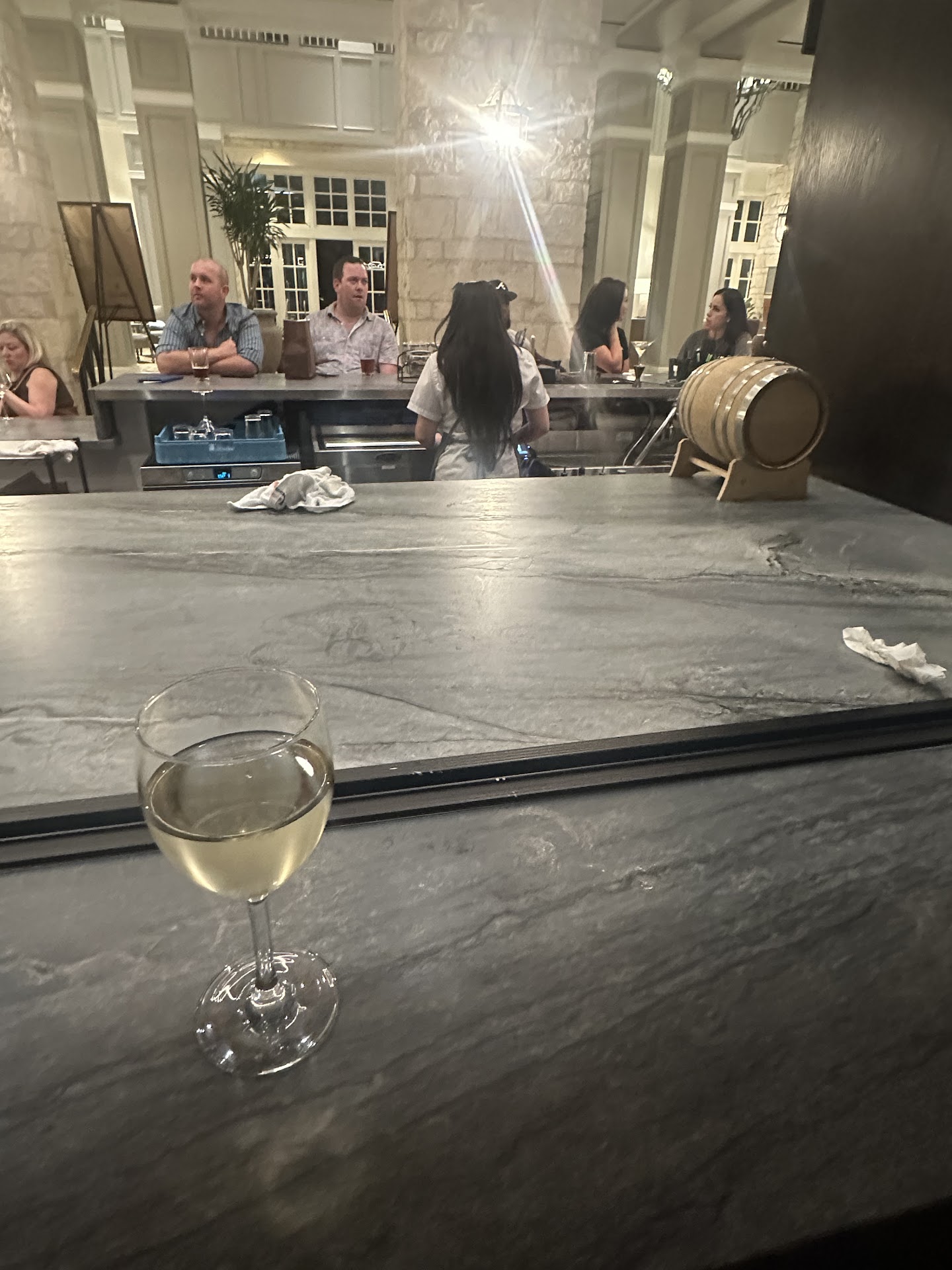 Read moreStopped for a drink before bed. The bar looked nice walking up to it and the selection was good. I liked the house wine, it was good. The bartender took far to long to acknowledge us for the amount of people there. The counter was dirty and trash still sitting where I sat on the empty outdoor side. After serving my drink the bartender left the trash and the sticky countertop for me. I had to request a bev nap. I just expect a little more...