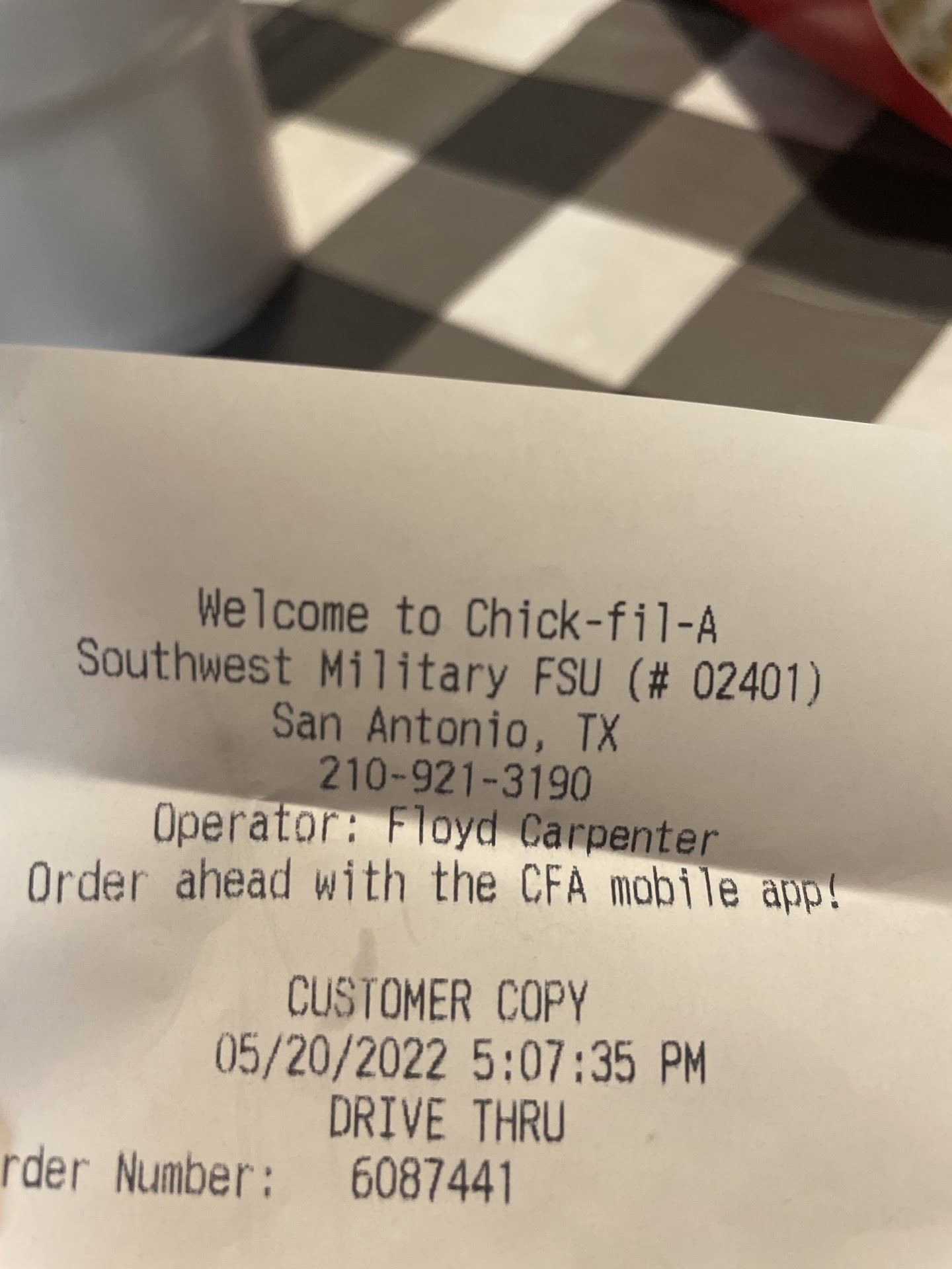 Ā Ā Ā Read moreIf there was an option to give a ā0ā rating, I would. This is not the first time I have had a terrible experience with this store but I never wrote about it until today. First I am actually surprised someone answered their phone instead of just going to voicemail. Sadly, the employee, Maria Gutierrez answering made my experience even worse than it originally was. I am a military survivor. My husband served in the AirForce for almost a decade and he died 2 years ago leaving me with a baby. I am not able to drive to locations as often as I would like due to my sons needs. Today, I decided to use DoorDash and spend $60 worth of CFA products to try and make my life easier but was super disappointed when all three of my beverages did not arrive with the order. I relayed my concern to the doordash person but he said CFA did not provide him with drinks. I called to get help, hoping to at least get my drinks next time I eat with you guys because I go repeatedly, but instead Maria simply said ā It is not our responsibility if the dasher does not check the order.ā Although I repeated that I understood that but all I was needing was to be taken care of for next time but instead, like a broken record, Maria repeated twice more, that it was not their fault that I had to take it up with DoorDash. No apology was even given, up until I mentioned it to her. THIS HAS GOT TO STOP. YOU GUYS TEACH ABOUT THE CORE 4 ALL THE TIME, PLEASE DO YOUR BEST TO IMPLEMENT IT AND PUT YOURSELF IN THE GUESTS SHOES. STOP TRYING TO PLACE BLAME ON OTHER PEOPLE. If I am not mistaken, whoever is responsible for bagging orders whether they are mobile, dine in or drive thru, has to ensure the whole order is COMPLETE. My order was missing salad dressing and all beverages. If you need a transaction number, it is 5499 at around 5pm for Bunny. Everyone has a story, like you guys seem to teach. And believe me as a widow, my life is already miserable, but this made it even worse. You are in a position to make a guests day...