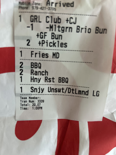 Let me tell you a story. Todays Order consisted of; Chicken soup with chicken nuggets, a cool wrap with side salad, a large lemonade and a frosted coffee with caramel and cookie crumbles. After picking up, looked in bag, should have been 4 packets of ranch, there were zero packets. Should have been three packages of crackers, there were zero crackers. Had to go park, walk up to the window and ask for it. Then I went home, wife informed me that her medium lemonade was supposed to be a large. Drive back to the restaurant with the drink and receipt got the large and came home again. I took my time sitting down to eat and when I did I noticed that my cool wrap was actually a spicy cool wrap which always makes me sick, but at this point had no choice but to eat it and hope for the best. The side salad is always a joke because half of it are the inedible lettuce stalks, itâs okay though because my wife orders a few extra nuggets for me to add. After dinner it was time for the frosted coffee with caramel and cookie crumbles which of course had no caramel or cookie crumbles even though I paid extra for them. This is an extreme example but something is always wrong, I am not sure I have ever been given exactly what I ordered a single time from this place and Iâve eaten here twice a week almost since the day it opened. Todayâs was so egregiously bad that itâs impossible to believe it wasnât on purpose and sometimes it seems they purposely hide the âmistakesâ so you wonât see them until itâs too late, like when you look in the bag and what looked like honey mustard wasnât honey mustard and avocado ranch wasnât avocado ranch. If you go here, thoroughly check your stuff. Oh and never get the Oreo shake if they still have that, Iâve missed multiple days of work because I couldnât leave the bathroom after having one. Last time was about a year ago so maybe itâs better now, I wouldnât know, not brave enough to try that again. If youâve read this far, thanks and if itâs not too much trouble, please say a prayer for me and that spicy cool wrap time bomb currently...