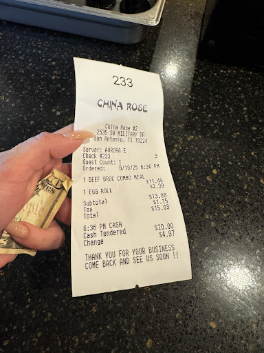 Ā Ā Ā Read moreDon't go there!!! We had a long day at work and decided to order Chinese, I called in an order and asked nicely for fresh food because it was a little past 8 pm when I ordered and the China rose rep informed me with an attitude that it's always fresh, not the case usually, so my tired husband picks up the food and we have a late dinner with or daughter and when we open it up we realize the chicken is undercooked, the rice is undercooked, the Rangoon are under cooked, the soup is old and the chips are stale. We could not eat the food so I call and nicely thank them for trying to make it fresh but it was so undercooked that they defeated the purpose. We were ok with just eating a sandwich and waiting til the next day for them to just replace the food. They told me that they can only replace the food if I have the original receipt, I had the receipt that they stuck on the bag which was not the original but it did have my order on it with name date and time, they said they usually don't honor this receipt but THEY WILL DO ME A FAVOR THIS ONE TIME ONLY!!!! REALLLY?!?!? After the attitude from Joselyn the "supervisor" and them making me feel as if I am the inconvenience, I told them I don't want anymore food from them and I will never go back there. We love China rose and go there 3 or 4 times a month but after this bad customer service and no apology at allllll , we are not going back. we will no longer suggest this restaurant to our friends and family. This is not the first ,second ,third ,fourth, or fifth etc... Time we have had a bad order from them but I have worked in the fast food industry and know that not every order is going to be right! But the least you can do is apologize and replace!!! Empathy and a little respect and at least one apology would have go...