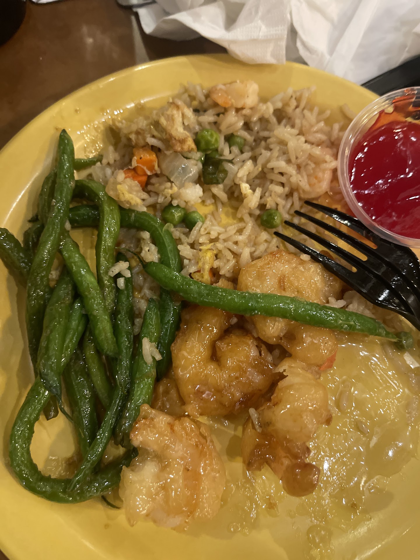Jalapeno chicken and shrimp Some pieces had a kick to it. But it is not overpowering.