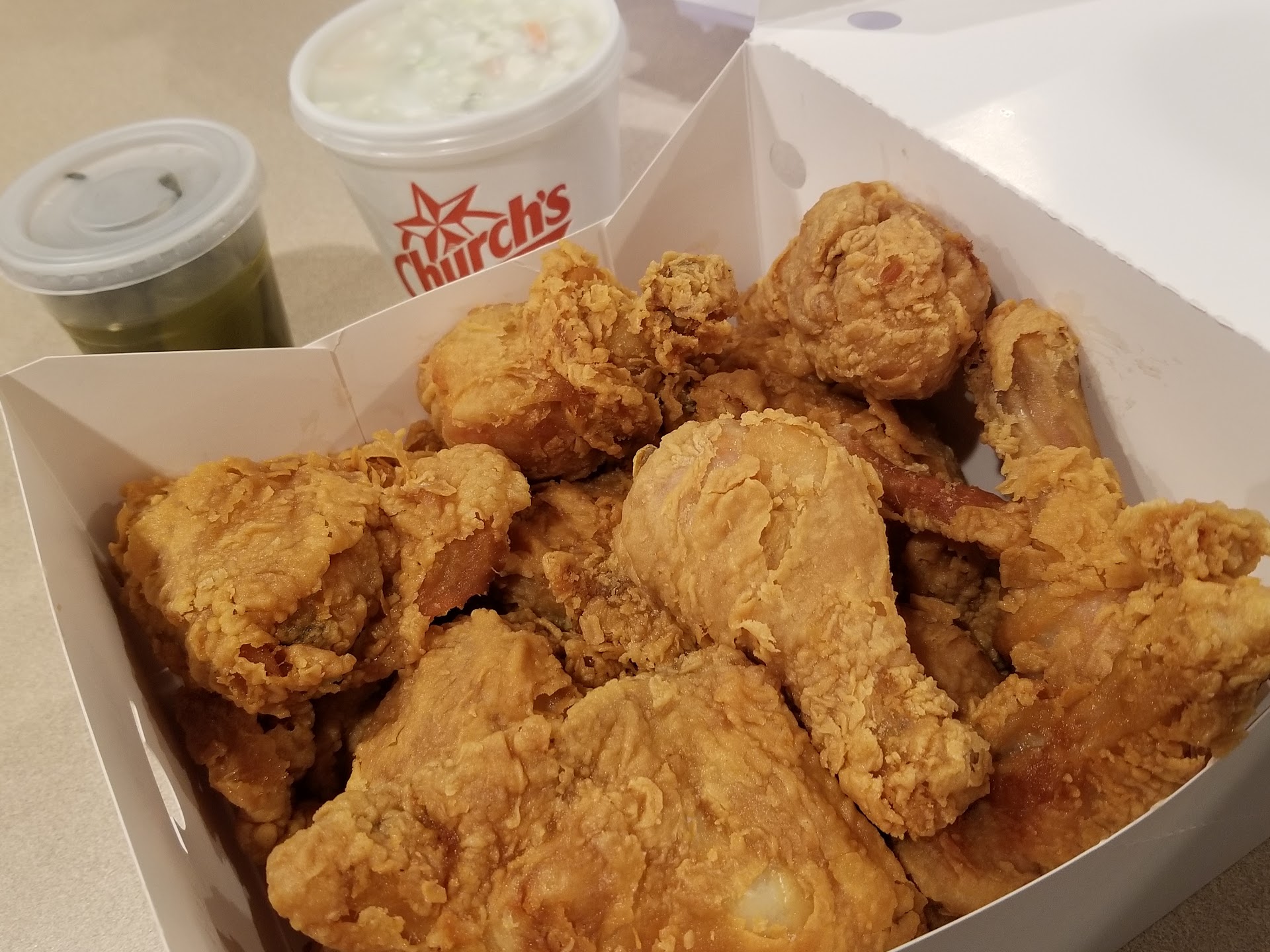 Read moreAbsolute favorite Church's Chicken to go to and they always have the best chicken though sometimes they're low on spicy chicken and the waiting time is around 15 min, but when you actually get them they are to die for. Biscuits could use more honey-butter, aren't as slathered as they could be. Still my favorite to go to no matter what. An added factor being that they're so friendly and joke a lot with my mom that I always love bringing her there for the fun factor.