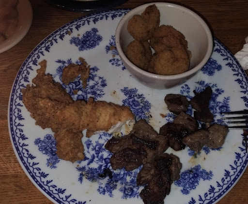 Read moreUpdate: 12/8/23 +(*) Great Customer Service , LOVE the shopping area always fun unique items I wish I could buy everything lol -(**) should have gone to another I didn't realize I had not updated in awhile Today my wife and I drove a hour in town to have a good meal before she went to work we where so disappointed I ordered the Tips, Tender, shrimp plate and the tips where SOOOO Hard OVER COOKED AND little TINY LITTLE pieces I ordered this before a week ago at another location and I understand it's tips but the there like 1 inch tiny pieces it was ridiculous we are not the type to complain so we just say we will not come back to this location. My wife ordered a breakfast plate , with tips as well I felt so bad she was so upset with how HARD and tiny tiny this was it's like the normal size tip cut in to 4 pieces (Either there being cheap or chef stealing) (Blue plate) was this visit I attached a picture I didn't take a picture of her plate she was just so mad she just wanted to hurry up and go.