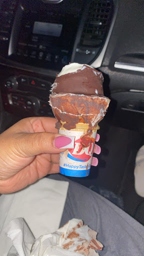 After during around town for hours. I offered my daughter an ice cream. Dairy Queen was right around the corner so I parked and went in. I ordered 2 blizzards, a banana split and a hunger buster. I got my number a sat down to wait for our food. While waiting the manager cam over and asked if I wanted my ice cream with my food or after. I thought that was nice of her to ask. I said after. Continuing to looking around the restaurant my eyes fixated on the other side of the booth we were sitting at. There was a roach who was also waiting for our meal to arrive! This was on of those roaches long and brown that drop eggs and where you see one you know there are hundreds more. I quickly got up and asked for every thing to go. As I stood by the counter I noticed the uncovered blizzard toppings. And remembered how that roach casually walked around my booth. I cringed even more. Trying not to let my ( imagination ) get away from me while eating my burger and chewing the hard textures of picked and tomatoes in my burger I stopped and dumped all of the food. After looking back the strong overwhelming smell of Human urine in the parking places at the entrance should have been a warning sign. I know not every dairy queen is managed like this one, but if you are carving Dairy Queen this is one location that fore your sake and the goodness of your children that you should avoid at all...