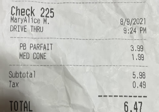 I said, "I guess I'll get the cup since we want ice." We got our order, and she didn't give me or charge me for my water. When I went back to ask for it, she said they don't have water out front; they have to get it from the back.. So, when they brought our Blizzards, they weren't even full, and they had lids on them, so no flip. I asked about the flip (they were all wearing shirts about it), and the girl just rolled her eyes and walked away. The manager was like, "We encourage it, but we don't give anything if they don't... it doesn't matter, we don't give anything away free." Eye roll, too.