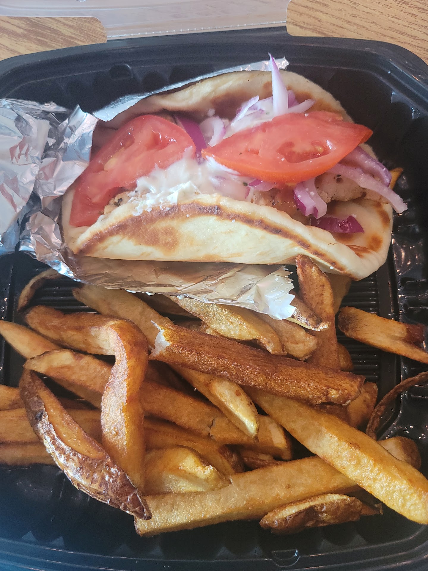 The sandwich was a huge disappointment. The chunks of lamb I got were mostly fat, the tzatziki had no hint of cucumber or dill or any zest whatsoever. Basically just yogurt. The fries were also soggy. This whole meal seemed like it was made by someone who was ready to quit and just didn't care anymore.