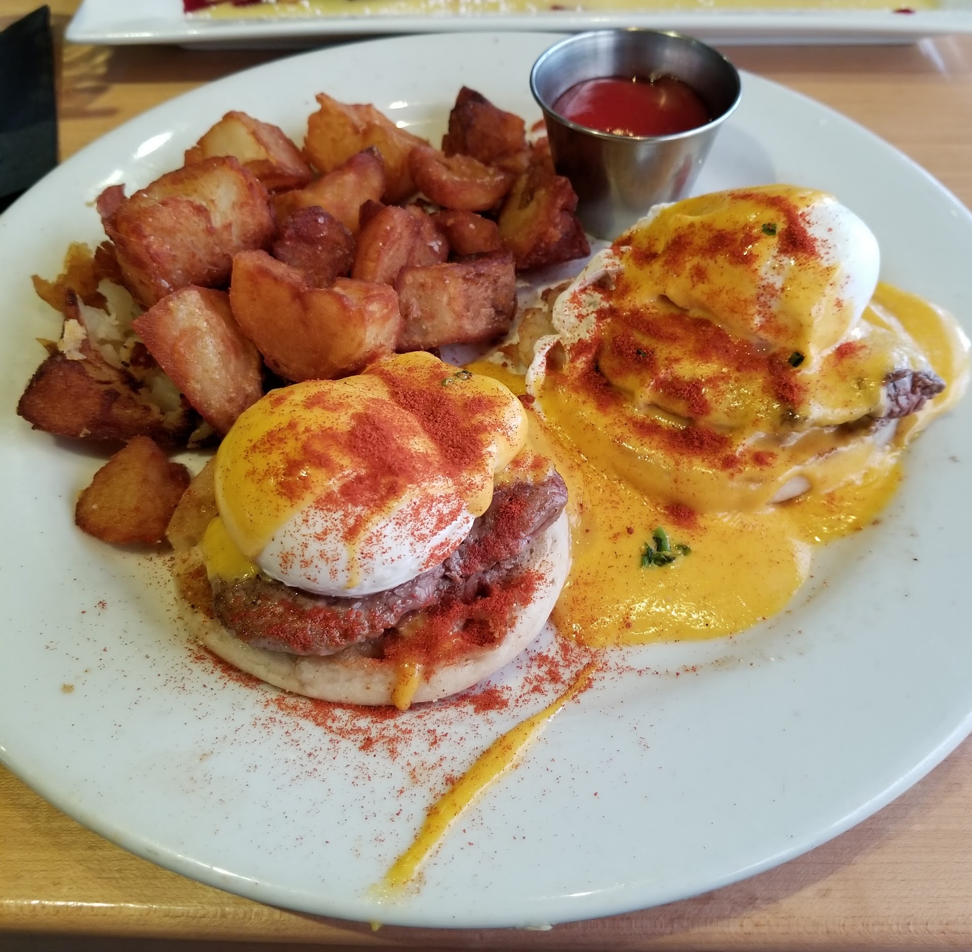 Unfortunately, the picture, taste, and overall appearance of the burger when I received it did not meet my expectations. Some ingredients were missing, and it looked rushed in its preparation. I rated the atmosphere a 4 because when I picked it up, I found the ambience to be quite nice, with a good vibe and ample seating available (although it was empty).