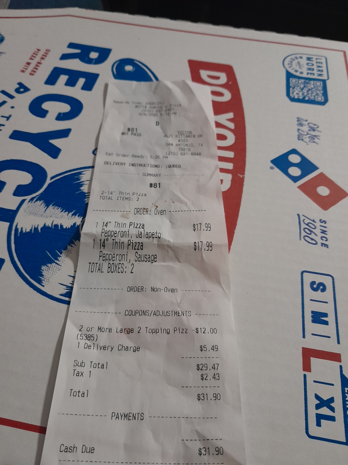 Read moreBAD SERVICE TODAY MARCH 17 2024 AT 401PM YOU'LL SAID 45 MINUTES. MY WIFE CALL BACK AT 456PM YOU SAID 10 MINUTES. I CALL AT 506PM TO 510PM. YOUR MANAGER SAID THIS IS LIKE THE WORST THING THAT HAS EVER HAPPEN TO YOU. THIS MANAGER IS NO GOOD. SHOULD BE FIRED RIGHT NOW. THIS MANAGER LIED TWICE IN ONE HR AT 401PM FOR 45MINUTES THEN AT 456PM SAID 10 MINUTES CALL BACK AT 506PM TO 510PM BEING FUNNY. PIZZA CAME AT 514PM BOTH PIZZAS WAS COLD. TO THE OWNER OF THIS DOMINO'S MANAGER DANIEL IS A LIAR SHOULD BE FIRED TOMORROW MARCH 18 2024. WE WANTED OUR MONEY BACK CREDIT FOR COLD PIZZA. OWNER I WANT DANIEL MANAGER FIRED TOMORROW MARCH 18 2024 FROM VICTOR FLORES ANOTHER BAD EXPERIENCE JUNE 8 2025 JOE THE GUY TOOK MY ORDER GAVE ME A PRICE OF 25.96. THE DRIVER CAME TO THE DOOR SAID 31.90. I CALL BACK JOE STARTED LAUGHING AT ME AT THE END I WANTED HIM TO APOLIGES HE REFUSE GAVE IT TO A MANAGER SHE APOLIGES FOR HIM I WANTED HIS APOLIGES NOT YOURS MANAGER SHE REFUSED TO GET JOE BACK ON THE PHONE. EITHER JOE APOLIGES OR HE GETS FIRED. THE MANAGER MAKING UP EXCUSES YOU WANT JOE FIRED HE LAUGH AT YOU. I HAVE THE RECIPT TO. JOE YOU KNOW YOU NEED WRONG HE NEEDS TO APOLIGES OWNER WHO FIRED HIM. FROM...