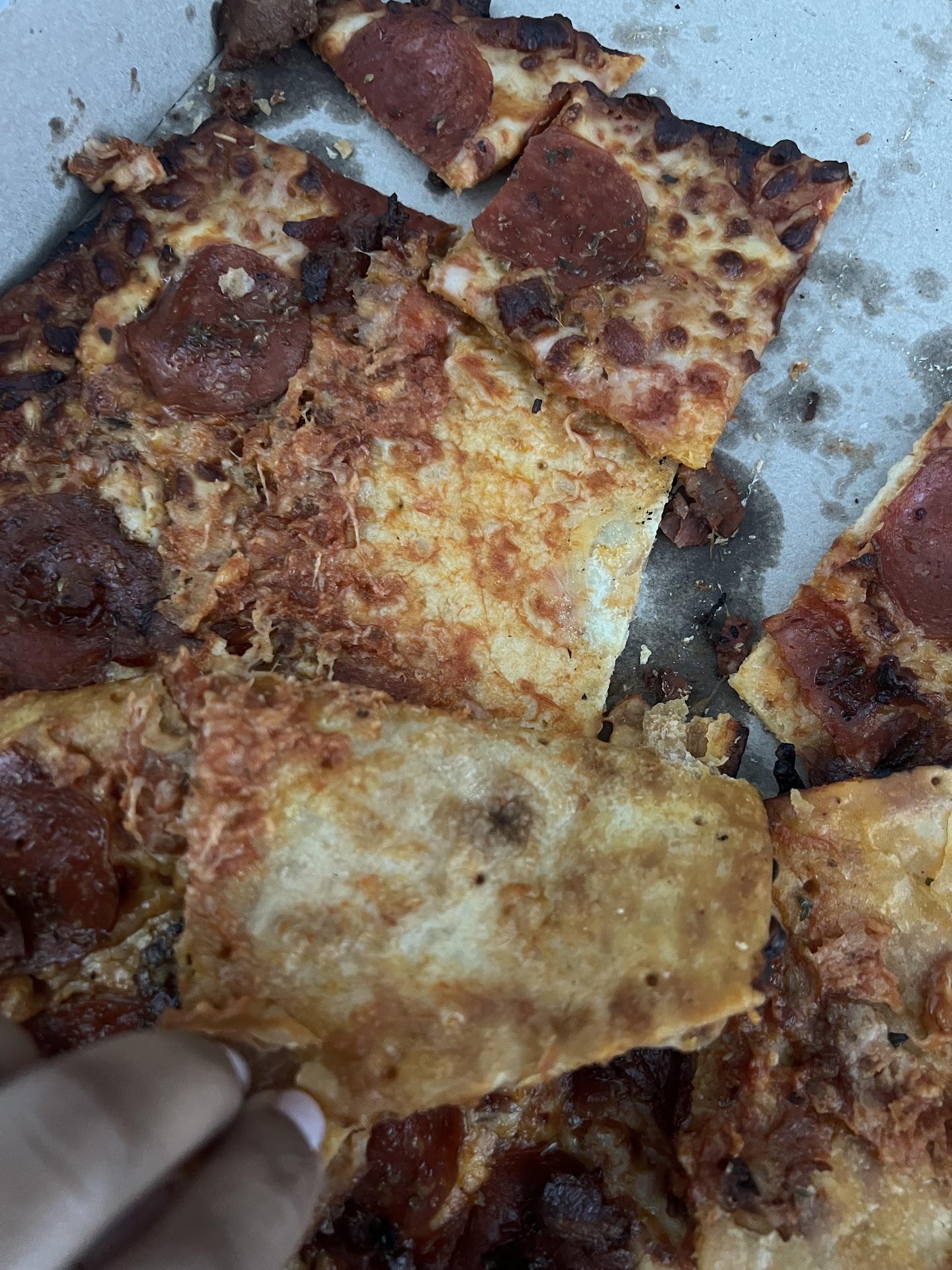 Read moreIt was OK but far from great. The employee were friendly and fast however, the pizza toppings are ridiculously skimpy. I worked at a domino's myself for almost a decade and it's only been a few years since I was employed by the company. I know for a fact that they are topping the cheese about 40% less than what is required by corporate. The beef and ham on our 3 topping pizzas was less than half of the portion that should be used on an extravaganzza. A few slices had no beef or no sausage at all while other slices only had 2-4 pieces of each meat. The onions weren't as under topped as the meats and cheese but were also less than what should have been placed on the pizzas. They need to use a scale and have charts above their make line if that don't already have them so they know the appropriate portions to use and can weigh them out or count them out as needed. I love domino's and strongly prefer it to other delivery stores but I'm honestly tired of feeling like I'm getting ripped off because the toppings are so skimpy.