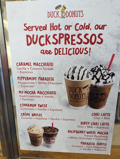 Read moreWe were visiting from California and wanted some good donuts and we were told to try Duck Donuts so we did just that. One thing we really liked was that they were made to order. We were only going to order 2 donuts but the flavor options made it undeniably hard so we went all in with the half dozen(why not!!). We also loved that you can customize donuts as well which we did our second time around the very next day lol. If you can't tell by now, we LOVED LOVED LOVED these donuts. You can't go wrong with whatever you choose because I am pretty sure any flavor you choose will be very delicious.