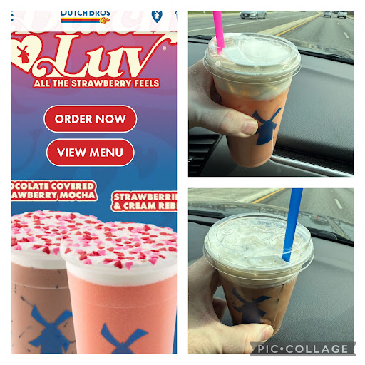 Read moreThis location is hit or miss⊠never get a consistent coffee or Rebel from them but like most locations, the workers are nice. Anyways⊠we wanted to pop in and check out the new âDutch Luvâ Valentines drinks and they totally missed the mark. For one thing⊠no cute sprinkles?!?! I know you didnât run out 12 hours before Valentines Day people!!! Secondly, the Mocha was okay-ish, it has a hint of strawberry, not sure if itâs because I got a small and thereâs just not a good balance of coffee and flavor but it just didnât do it for me- needs more flavor syrup for sure, maybe you can ask for extra? As for the strawberry cream rebel? Iâd call it strawberry fizz maybe. Also missed the mark and WHERE ARE MY SPRINKLES? Lmao Itâs not petty, itâs just expected at the beginning of a promo! Do Better...