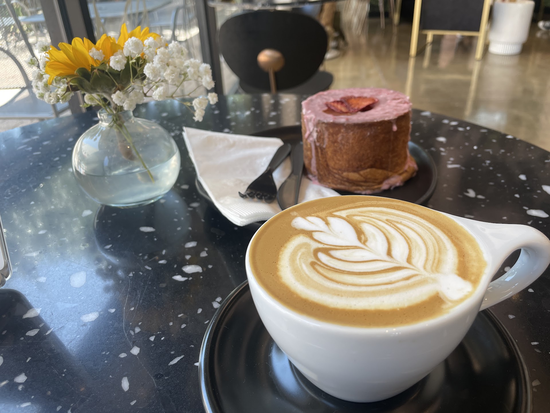 When we made it to the counter the business owner greeted us and could tell that it was our first time and I was a little overwhelmed because my initial latte order with vanilla syrup might have been a safe option. He asked my daughter and I how we like our coffee (sweet/not so sweet) and then he asked if we were allergic to dairy, which we both are not. He gives us a sample of this vanilla horchata and whoa. Game changer! We both changed our orders to the latte with vanilla horchata.