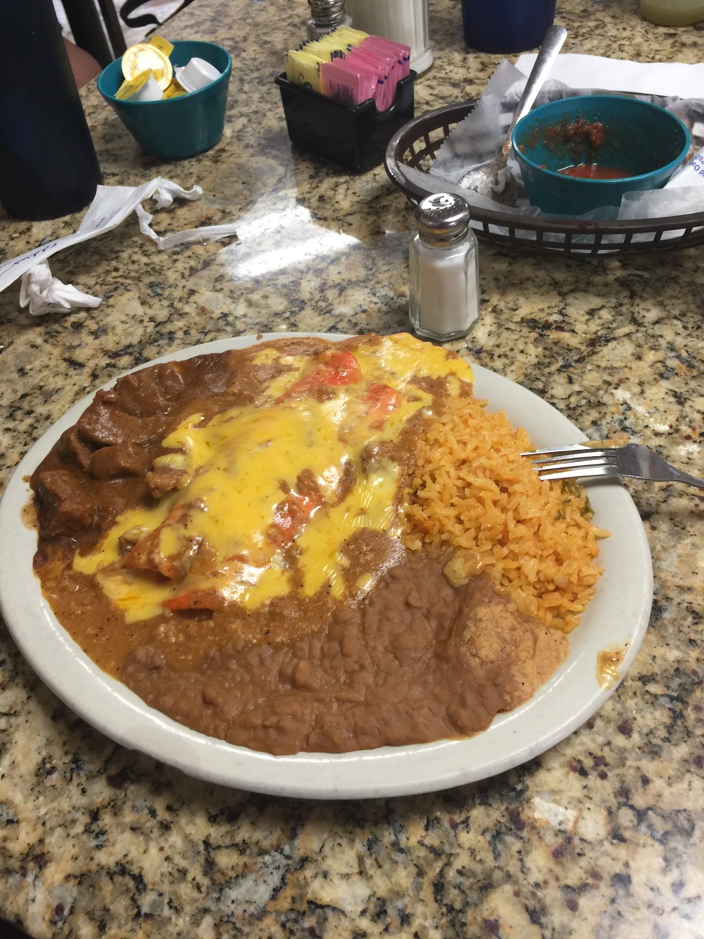 Between 2 people, we ordered enchiladas, carne guisada, a puffy taco, and a tamal. The one star off of the 5 is due to the enchiladas. I am really, really picky about enchiladas, and I dislike the processed cheese that most restaurants use. On its own, I would not take a star off for that, because I know I am in a very small minority. I order enchiladas knowing what I am likely to get, but always hoping to find some I really love. But my husband also did not care for the cheese, and he is far less picky about that. In addition, the sauce didn't have much flavor to it. So they lose 1 star for that. Maybe the enchiladas are just not to our taste.