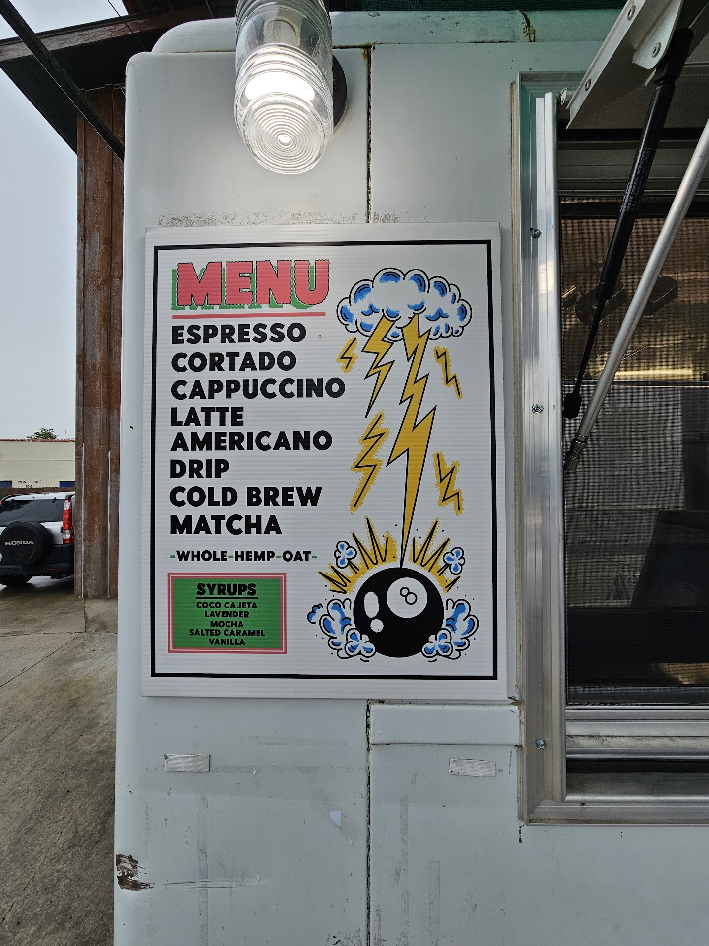 Read moreStopped by on the recommendation of a friend and am really glad I did. This no frills, just good coffee truck offers some great coffee and coffee drinks. The staff is cheerful and friendly. All drinks are made to order and are exceptional. I opted for a latte with a flavor shot of salted caramel and I gotta say it was one of the best I've had. It was perfectly balanced coffee with a more subtle caramel flavor not too sweet or overpowering. I'm always on the lookout for great coffee places and 8 Ball checks all the boxes. Support local and give them a try,...