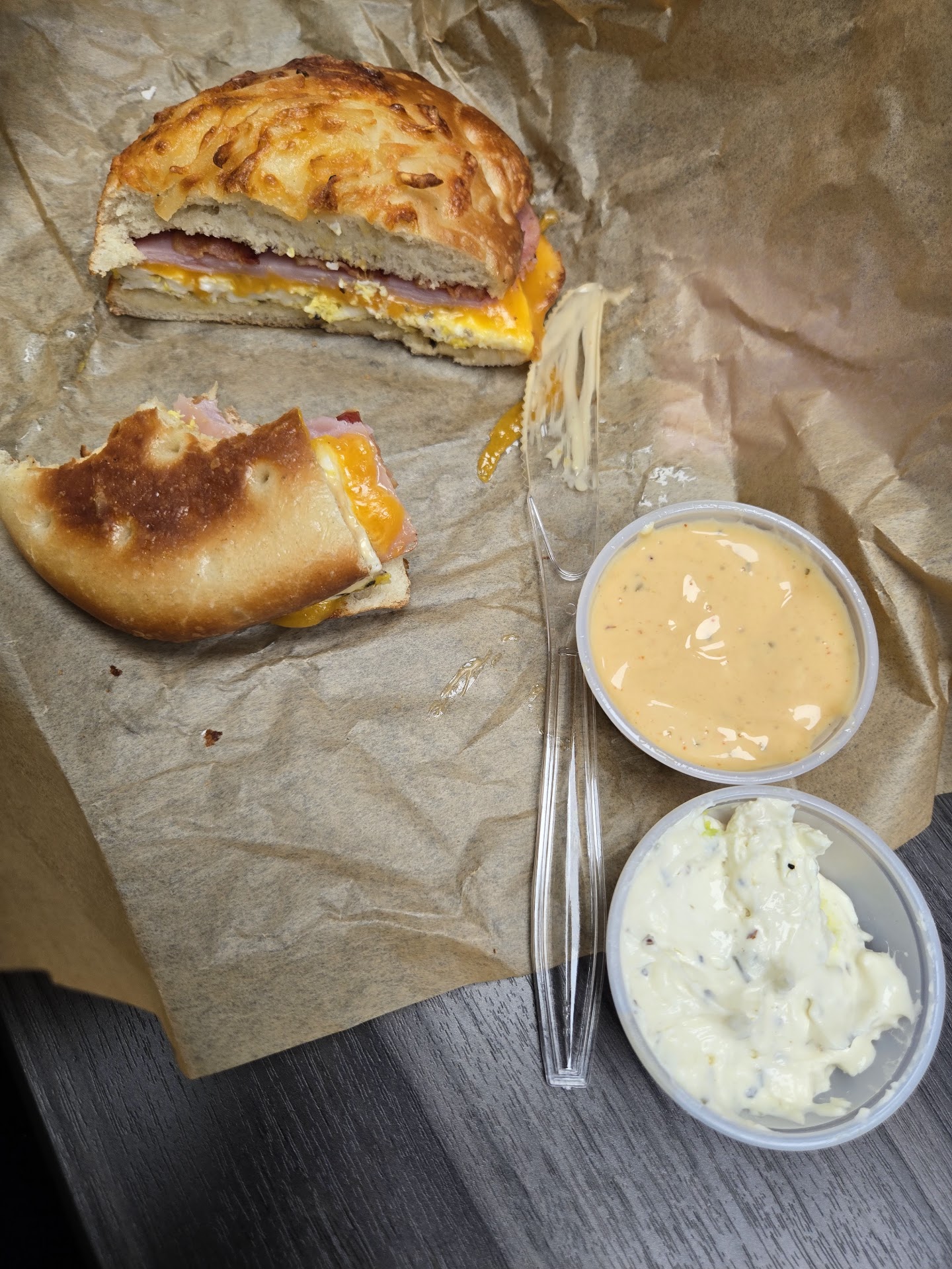 Ā Ā Ā Read moreSo last year I was told this place was "amazing" by a family friend. My wife and I stopped by for breakfast this morning. We both ordered our sandwiches with extra "shmear" (cream cheese) on both sides of the bagel. After awhile we were told there was no more shmear and they needed to make more. I said that was fine but asked for the sandwhich to be remade if it was going to take awhile because I didn't want a cold sandwich. After awhile later they gave me my order. Cold bagel cold egg cold meat and shmear on 1 side of the bagel. Not wanting to be a total karen and ask to remake the entire order I simply walked up and asked for shmear to be added to the other side of the bagel like I ordered. Straight to my face I was told no. WOW!!!!never again will i wait for a cold sandwhich from here not made to order even when you ask nicely. In case the manager or owner would like to verify the complete lack of service at their business 4/2/2025 830am to 905am I was wearing jeans and a striped polo shirt. After sharing the experience with the friend who recommended the place they told me "ya unfortunately it's really gone downhill we don't eat there any more".