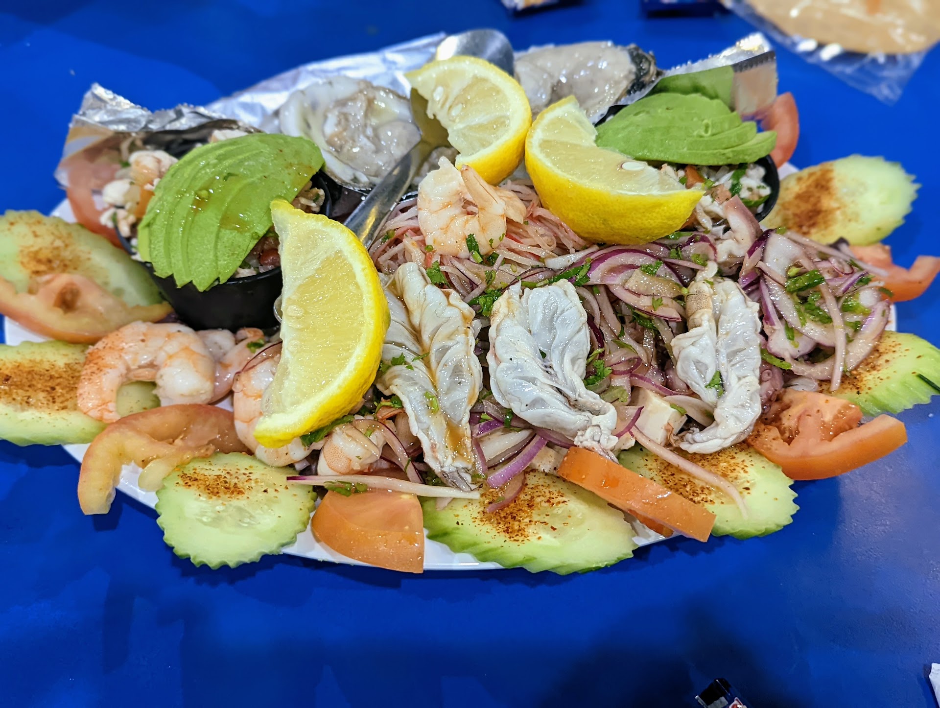 I ordered the fish tacos and the ceviche bandera. I ate the fish tacos first because those are hot, and I didn't want those to get cold. Started on the ceviche bandera, and the cucumber one was salty. It's much saltier than normal. I tried the strawberry ceviche, and I almost spit it back out. It was intolerable to eat. The ceviche comes with cucumber on the side and tried eating those to help get rid of the salt flavor in my mouth. I tried again eating of the ceviches and it was so bad. I eat here all the time, never does it taste bad. So I waited for the waiter to come back to our table. She had not returned since she dropped off the food. We waited and and wait finally she came back around, and we let her know, "Hey, the fish tacos were fine, but the ceviche we couldn't eat. Can we speak to the manager. She leaves and comes back while later and says she can take a discount off the whole bill. I say no, I need the manager. Because I tried the ceviche, but I did not eat, and I'm not taking it with me. The manager comes, and I explain the same thing. She repeats her off of a discount. I am not understanding that I am not willing to pay for something I can not eat. She then told me, but it took me 45 minutes to let the server know about the food. Yes, 45 minutes because I ate the tacos first, and then we had to wait for the server to come back to the table because we couldn't find her. She then said I could charge you for a small ceviche for the one you didn't complain about. I told her no don't want none of it. The three ceviches come together, and two of them are beyond trying to eat. She goes on to tell me how they can remake it. But the salt was so bad I couldn't taste my soda anymore. So no I didn't want the food remade because at this point I cannot taste anything. She conttinues try to sell me on eating the ceviche. Finally I repeat myself again. She says momma why didn't you just say that was option one! To make matters worse she walks off and the waitress never comes back with the bill. We wait and wait finally go up to the manager and she hands our bill to someone to ring us out. Ridiculous service- this is not customer service. She spoke more than...