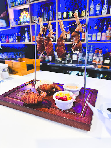 We started with the shrimp jalapeño poppers, and they were nothing short of spectacular. These arenât your average poppersâtheyâre huge, bursting with flavor, and served in one of the most unique presentations Iâve ever seen. Each popper hangs from a string by a clothespin, suspended between two sleek metal rods. Itâs a showstopper the moment it hits the tableâand the taste absolutely lives up to the hype. Smoky, spicy, creamy, and perfectly cooked.