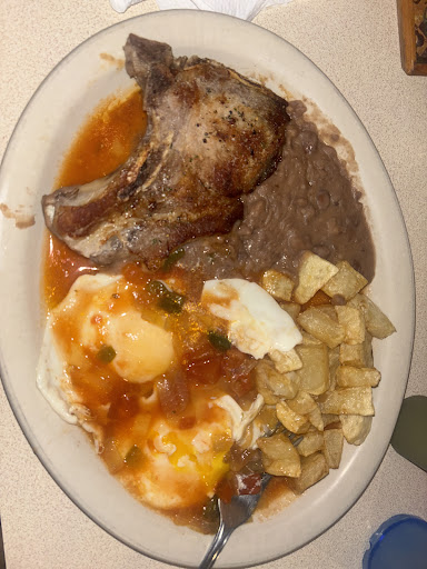 Read moreVisited because they open early at 6 AM. I ordered a pork chop breakfast plate with potatoes, beans, and sunny-side-up eggs with ranchero sauce, plus another plate with beans, potatoes, and what was listed as chilaquiles. Flavors were generally good, but the potatoes were undercooked and had a taste of old oil. I had requested sunny-side-up eggs but forgot I prefer them over-medium. When I asked to have them fixed, they were returned seconds after the microwave beeped.. eggs were in same position, just slightly more cooked. The chilaquiles were more like scrambled eggs with tortilla pieces and pico. One coffee, one lemonade, and two plates came to $29. Given the quality and experience, I won’t...