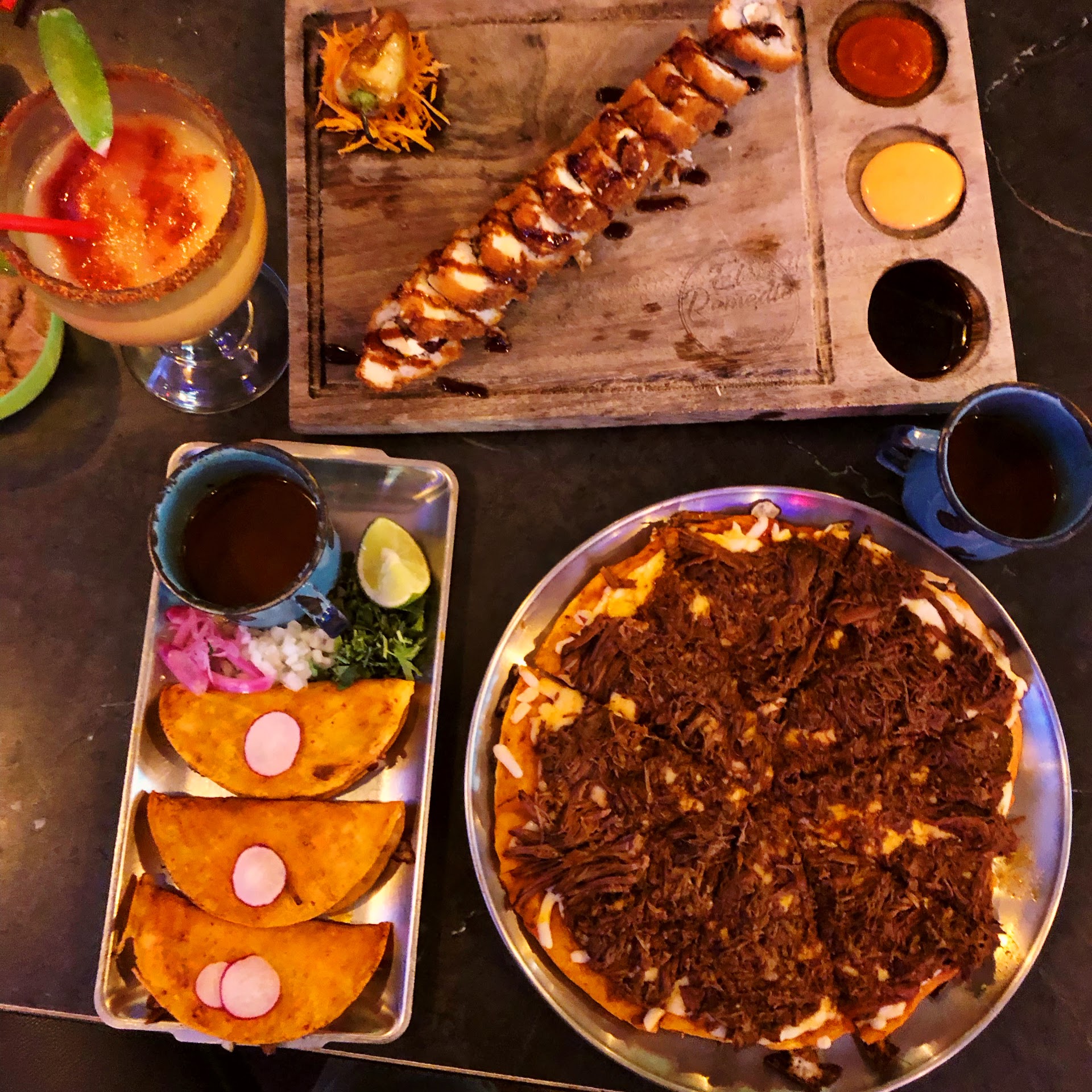 We ordered several plates. The birria pizza was filled to the brim with the famous birria meat; affixed between two large tortillas, the consommé that accompanied the pizza was rich and brothy, albeit a bit greasy, but definitely tasty.