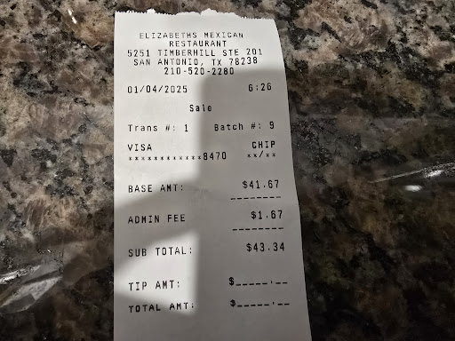 I went to elizabout a month. Go and my experience wasn't all that great, but I thought okay. Let's try this again at the time that I went the first time I went during lunch. I paid my bill with my credit card The second time I went I took my family And went during lunch.My bill came out to $57. ! Mind you , there was a two dollar CHARGE To use my credit card That did not happen a month ago People work very hard for the money and they choose these mom and pops to help Them as well!! Well , here we are helping them out and yet They are charging a charge to use our credit cards.Some of us can't afford fifty six dollars for lunch So We choose to use our credit cards To make me bake a full payment on our next Payday.Will I choose to go to Elizabeth again no good food but i'm Going to pay to use my credit card.They want To continue service with people , they shouldn't charge people to use a...