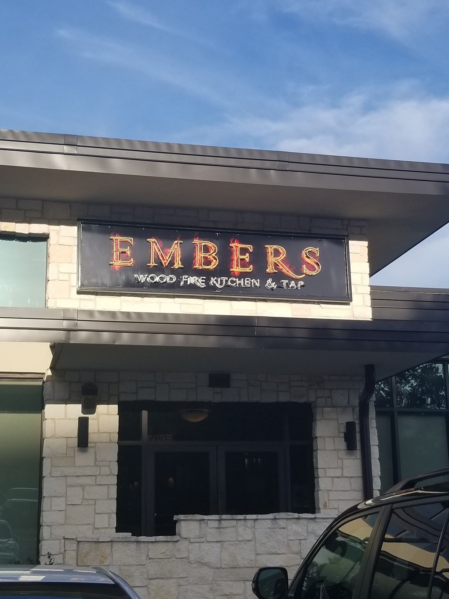 I am going to give it 5* (with a few caveats), so read and make your own conclusions. We arrived and the wonderful smell of wood burning hit us right away, we were greated by a charming hostes. She informed us that there would a 5min wait, then she came back to tell us that the wait would be 25min and proceeded to take our name down. She left came back and said "it will be just a few minutes" 🤪. So i agree with prior reviews about "wacky" employees, if you will LOL. We sat a booth which was nice but you could feel the frame of the seat, maybe they need new ones. The decore and ambiance are superb, very nice and welcoming. They have an awesome patio where you can also eat or just sit and enjoy some beer, cocktails, appetizers and good company, complete with patio furniture fire pits and warmers for those cool winter nights. Our server was of the same "kind" friendly and pleasant but a bit.....idk. she would come to our table like a hit and run, loke if she was not very interested in really serving and providing customer service. We order the house margarita and a mango margarita, frozen. Both very tasty but the mango just needed a bit more mango, you can definitely taste the tequila and the price was super reasonable. We order the 3 lil pigs for appetizer and the rocky mountain chicken for dinner (split). Dinner came first, we sent it back. 3 lil pigs are wonderful, cooked to perfection, we order the sauce on the side. Dinner came, we had broccoli and onion rings ( nice and crispy) for our sides. The fusion of flavors on the chicken was excellent, we are not sure if it was the old dinner just reheated ( something to keep in mind) or not but heck it was already on our table and we were hungry ready to eat, we enjoyed it. The place also has a nice pizza oven, maybe next time we try a pizza or a calzone, and a great selection of beer on tap, specifically local and state beers. Staff was very friendly and the facilities were "clean", for the most part. Don't look too far up or too far down. Anyway i hope this helps but if you are still not sure, well GO and give it a try, I believe they also take...