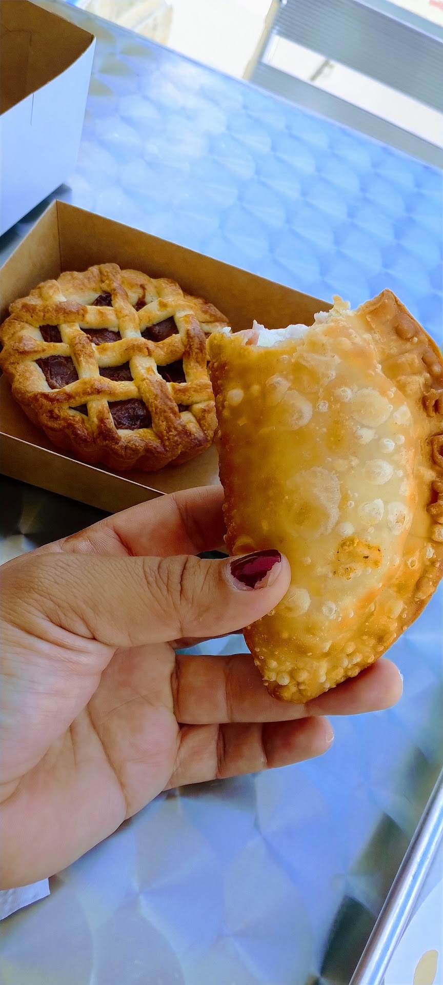 Tried the guayaba y queso empanada. Perfect sweet dessert after lunch; the surface is slightly crispy and after the first bite the amazing filling will overflow out requiring you catch them. All is worthwhile. Almost like an upgraded peanut butter jelly sandwich but even better.