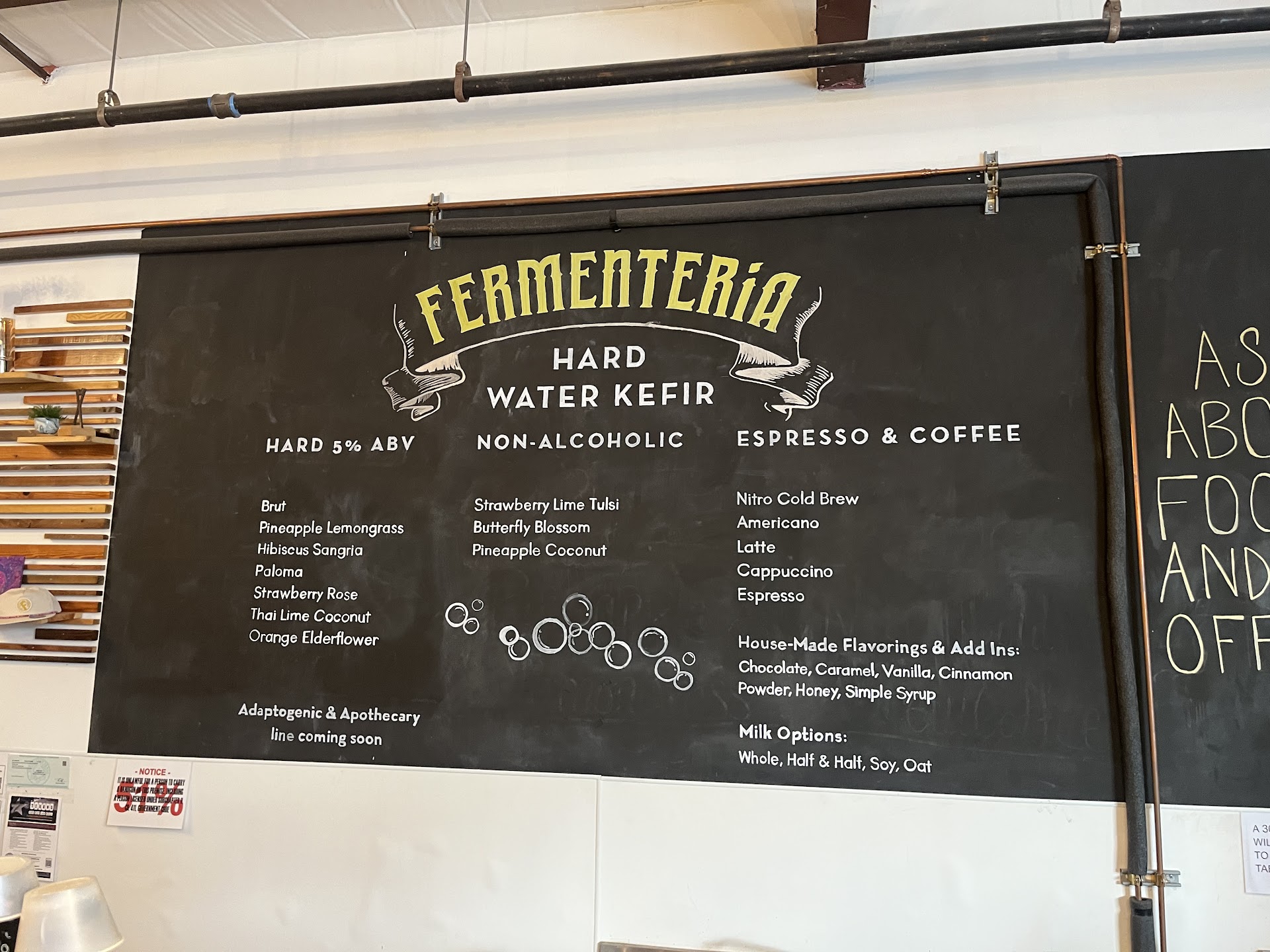 Read moreI wasn't sure what to make of "hard water kefir", but it's really delightful. No dairy, it's more like a cross between seltzer and kombucha. Low- to no-sugar, fizzy, beautifully flavored, full of probiotics, and 5% alcohol. (They also have soft water kefir options, which is to say, non-alcoholic.) It's a nice light and flavorful drink with a bit of kick, but not heavy or overwhelming. It would be great for a tubing...
