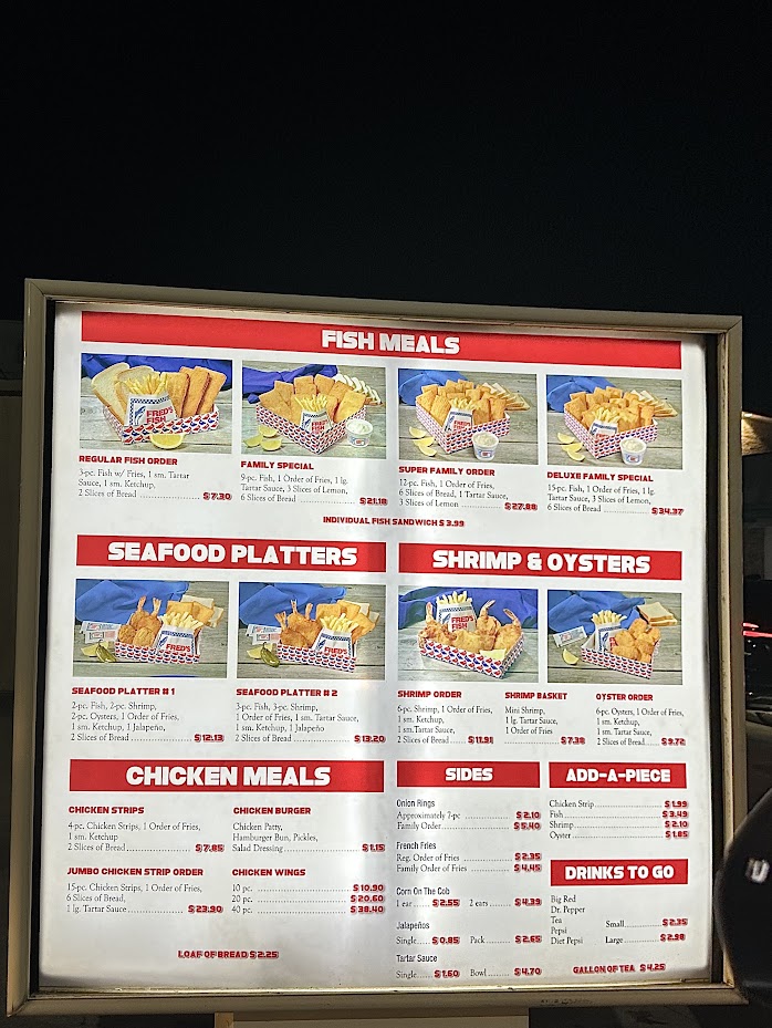 Read moreThe first impression upon walking into Fred's Fish Fry was how clean the restaurant is. At the counter, we found the staff to be very friendly and helpful, even pointing out that the menu at the register is more complete than the one above the counter. There are pictures of the menu items that I did not pay nearly enough attention to. Though I did notice that the way the food was arranged in the baskets when it was served was quite close to those pictures. That was impressive; the pictures are typically far better than the actual product.