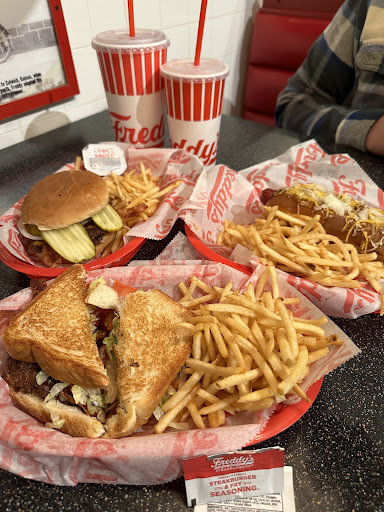 Read moreI had originally posted a five star review, but I am now updating the review. Let me start by saying that the food at this Freddys is great! It's freshly made, it's consistently made the right way, and the service is wonderful. The reason for my 3 star review is the noise level in this building is outrageous. First, since it's 2019, most people insist on talking in restaurants at unreasonable volumes, this in turn makes people at the other tables talk even louder. (This is beyond Freddy's Steakburger control) However, adding these loud people competing over each other's conversations into Freddy's steakburger at the quarry, (which is a tall building with tile floors and no carpet to absorb the sound) , the result is not being carry on a conversation with the people at your table.Now imagine all of that noise I just described , and add the employees at the pickup counter speaking incredibly loud on a loudspeaker to call out order numbers and tell you that your order is ready.The loudspeaker makes the already loud conversations even louder. This is where my issue lies and this is the reason for my 3 star review. I believe in constructive criticism so I feel like the solution to this would be to stop using the loudspeaker and mount a flat screen TV above the pickup order window. Use the flat screen TV to display the order numbers or customers names whose orders are ready. I will gladly update my review if a solution to this noise level is...