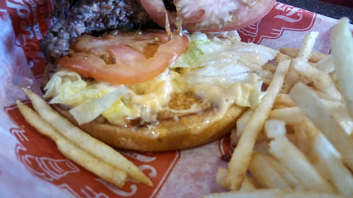 I have to say I think Freddy's Burgers are pretty tasty . Looking around I was very hesitant. I ordered a burger and ask for no cheese as usual people think that you don't want anything else with it. I explained that I did want my lettuce and tomato nothing was mentioned about any special sauce after looking around at the kitchen and seeing the lady with a nut pinched between a pair of pliers as they were working on the custard machine .