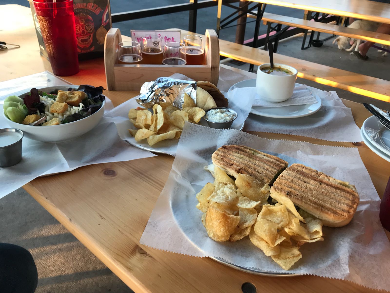 Read moreWe were shopping at the Northstar mall, and we were looking for a brewery we had not been to. This popped up in our search. Even though it was not on our way home, we decided to visit this brewery. It's a little deceiving as it is on top of a hill. Approaching the brewery, we noticed it has outdoor seating. That's an added plus. We went inside and had no problem in being seated right away. We didn't wait to long for a bubbly, energetic server to approach our table (Elena). Being our first time there, I asked her for suggestions on beers based on my likes, and she made a few. It's so refreshing when you have a server that knows her products. I was pleasantly surprised that they offered hummus and pita bread or chips. While it was good, it needed a little bit more flavor (hummus). Other than that, it was good. I also ordered the Freetail BAT with tomato basil soup. I am glad that I did. The soup was nice and creamy, and the sandwich was spot on. The bread was soft, bacon nice and crispy, and the avocado ripe and creamy all that just made the BAT so YUMMY đ . My husband had the Gyro and chili cup. He enjoyed his food even though the chili was fire đ„ Our beers were pleasantly tasty as well. Our server, Elena, was superb. If you are looking for a chili brewery, then check this out. I would highly recommend it. One thing that I would recommend is the lighting. It's pretty bright, perhaps turn it down, just a skosh....