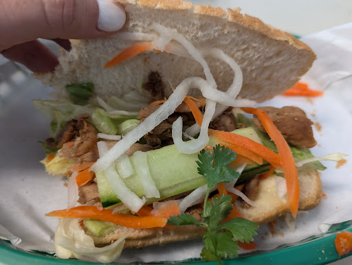 Really great sandwiches! I had the Chef's Continental sandwich, and it was delicious. It features a home-made pate that they make, along with sliced chicken and an interesting sausage. The pickled veggies and cilantro go perfectly with the sandwich, and the mayonnaise and home-made chili paste. They compliment it surprisingly well. The soup appetizer was also a treat. It was a french onion soup with a sopping wet bread slice smothered in cheese on top. The small onion bits floating in the soup along with the cheesy bread make a combination to die for. The tea is surprisingly good, too!! I would say its almost as good as the tea at Simi's. Almost, but that's a huge compliment in my book! (I drink unsweet tea, so keep that in mind). I don't like sweets but my husband scarfed down my cream puff and his (he was eyeing mine) and he says it was really good and the bread for it was so soft and fresh.I really liked that the owner made an effort to stop by our table to talk with us. He was really sweet and I've noticed the few times I've gone that he makes an effort to get to know his customers and interacts with several of them. I left really happy and smiling. Also, with the heat outside the interior was really cool and fresh and I really appreciated that. The bill came out to $20 for us two, which was also an amazingly good price and I will happily dine here for as many lunches as I can for some delicious, fresh, yet...
