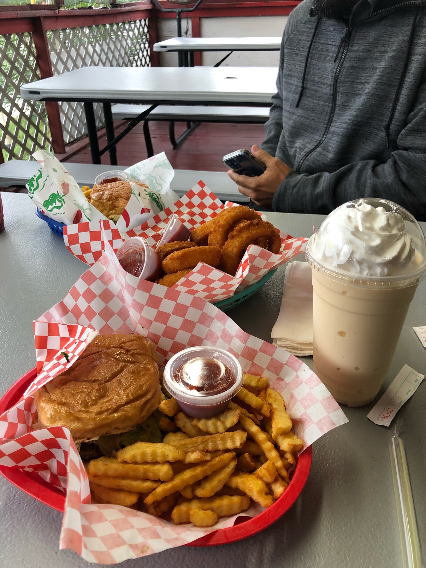 Read moreFlavor: B Service: A Tea: D Solo dining: A This place appears like it’s a lean-to shed of a rundown old corner store building that now houses a boutique, barber shop, and burger stand (airport-hair-care-tire-center vibes). Before I could get up to the window, a woman leans out of her truck and asks “You haven’t been here before, have you sir?” I acknowledged that she was right and then she just said “Well everything is good, everything.” Endearing level 10 though not exactly helpful. I got the “El Big Boy” at my order-taker’s suggestion. It’s hard to say no to bacon, maple syrup, a fried egg, tots, grilled onions, and cheese. All of those flavors came through in a teamwork-makes-the-dream-work kinda way, except the syrup which I couldn’t detect. And the burger itself was flavorful too… no toppings carrying the flavor load here. You could even see the black pepper in the burger patty. My heart fluttered a little. But with all this greatness, the burger was too dry for me to love it. So I’m giving it a B on flavor because juiciness impacts flavor. Cooking the burger a little shorter and making that egg over-easy so the yolk oozes out could be game-changers for this promising creation. The perfectly-cooked-and-seasoned crinkle-cut fries and the “dream sauce” (akin to Chick-fil-A sauce but lighter and better) were great complements. Drinks are limited to can Cokes or a few flavors of agua fresca. I got the watermelon which was a little intense for my taste. If you’re dining “in” you’re sitting at picnic tables on a screened-in porch (and sweating in all the places if you’re there on a summer afternoon). I was there when we had the perfect number-of-parties-to-number-of-wall-fans ratio so everyone could sit in front of one and no one had to die. I did notice one smart mama sent her daughter to order and wait so she could stay in her air conditioned vehicle until her burger was ready (#reasonstohavekids). Perhaps I’d give this spot another chance on a cooler day. Cheers to Frozen Dreams for serving up upscale burgers in a not-so-upscale part of town! #theburgertrail...