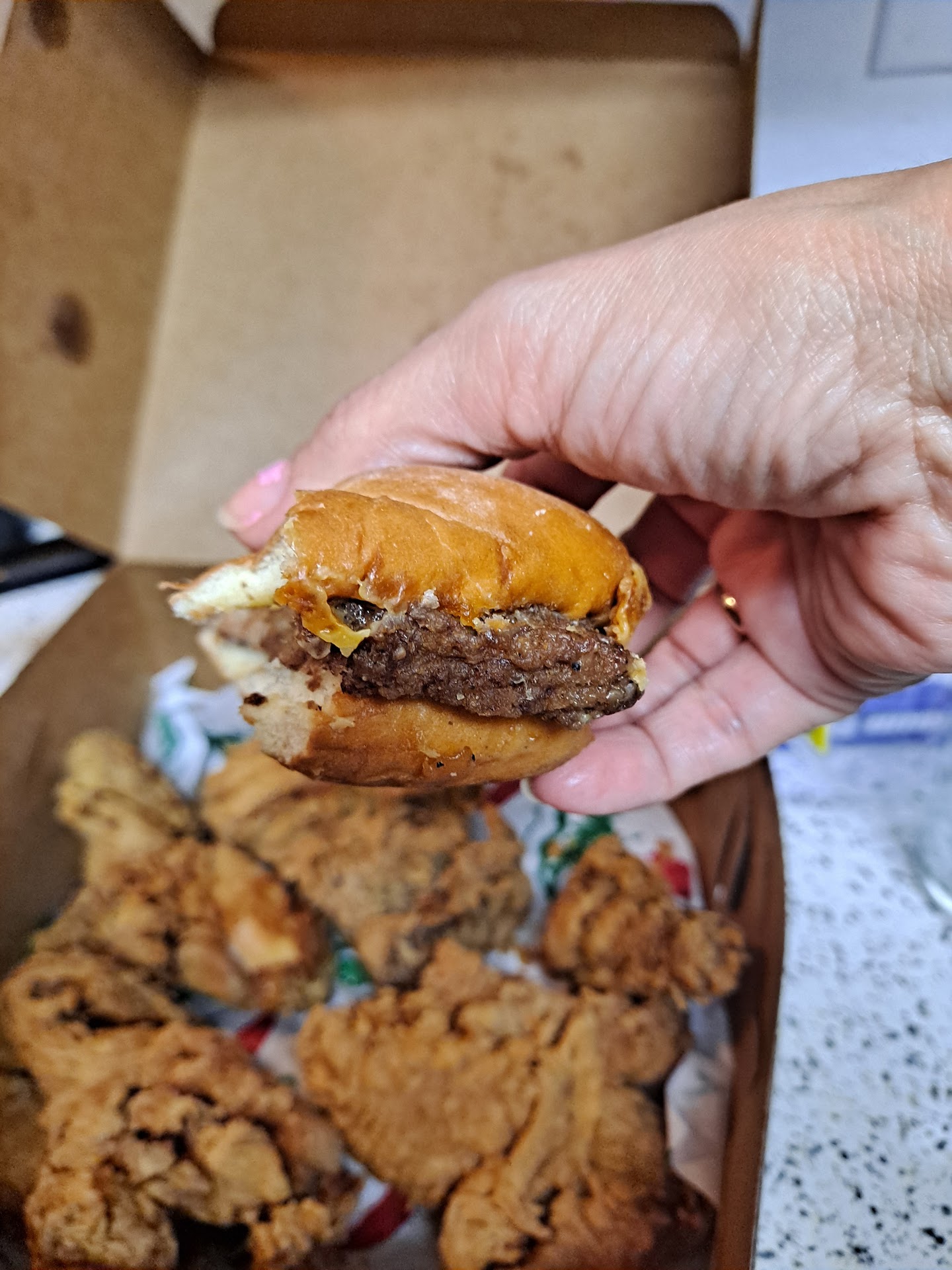 Read moreDo Not order the burger. It's literally a microwave burger by the 3rd bite it was rubbery. He said it doesn't come with lettuce or pickles and now I know why. He took it out of plastic wrapper and stuck it microwave. I've ordered the chicken about 3 times and it's fair. There's no flavor which is fine if you have high blood pressure. This last time I ordered the chicken ot was dry over cooked and burnt. I wanted to like this place because it's small and been there forever but Nope. I give it 3 stars because the staff is...