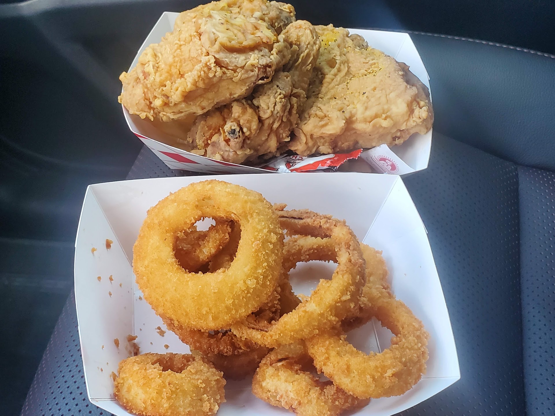 Great fish!! The fried chicken is lemon flavor. The tarter sauce is by far the best! Sometimes i just get french fries and tater sauce only.! Ive been coming here since the early 80's. My grandma lived right down the street. But know this. This is not a healthy- let me count my calories type place.!! This is joint where itll set your diet back a month. But in the end youll say "Damn it was good!!" The staff are friendly. The prices are more than fair. And one time they even gave me a pen with there logo on it. Now my brothers and sisters fight over that pen lol. Its for the memories!! First you order at the window and you wait standing outside or in your car and theyll call your name when its ready. . i usually stop by...