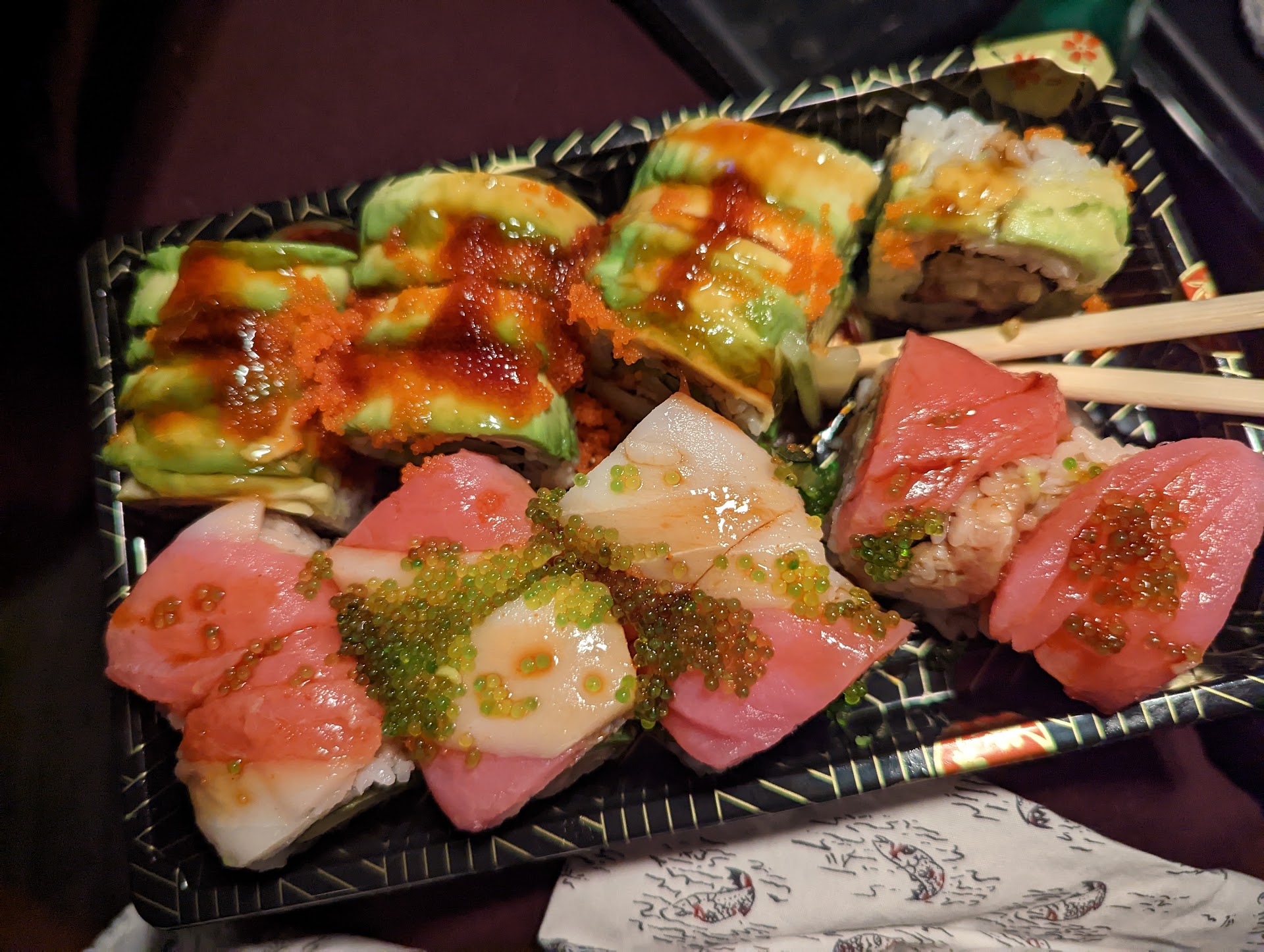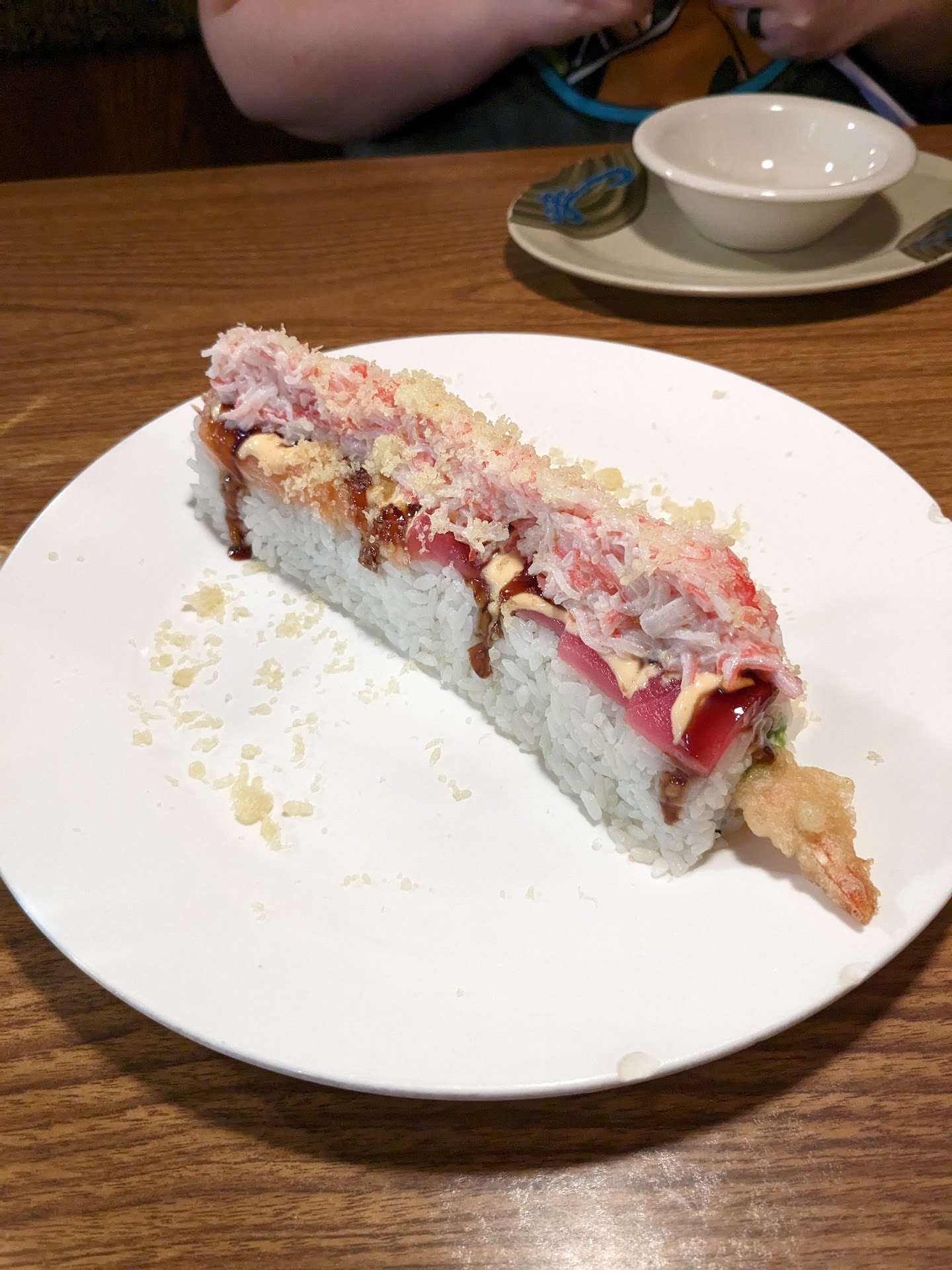 We ordered the fried calamari and the O-Roll. The dipping sauce for the fried calamari definitely needs to be changed. We had to use squeeze bottle sauces to actually enjoy them. And the O-Roll did taste delicious, but the fact you couldn't grab one piece without the rice collapsing was upsetting. It was a crumbled mess.