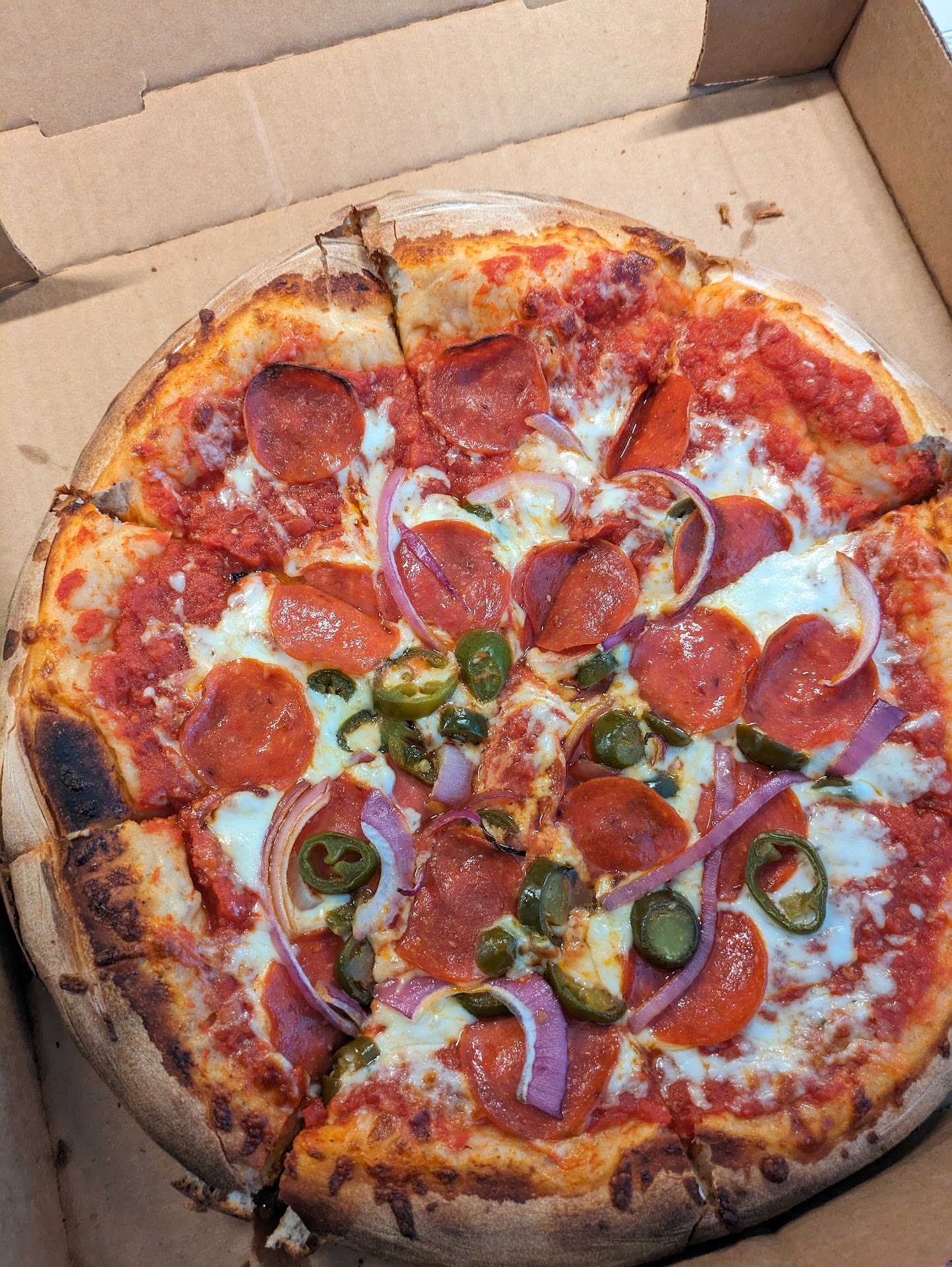 The "whole enchilada" pizza is unexpected but amazing and the pizza rolls, a happy hour staple, are delicious. The more traditional combo pizza, the "Home Run, Baby!" is topped with fresh veggies, pepperoni, and what I believe is fresh Italian sausage. The lasagna is decent (and huge!) with lots of meat and just right amount of cheese. I am not a fan of the meatball sub...there was something off about it to my palate. But, just about everything else on the menu is very good for a local pizza pub using house-developed recipes.