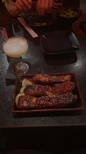 Now letâs talk about the food and drinks, because wow. I had the ramen and the sticky ribs, and both were a straight 10/10. The ribs? Absolute perfection. BBQâd just right, fall-off-the-bone tender with a sauce that hit every note: not too sweet, not too tangy, just the ideal balance of bold, smoky, and savory. The ramen was equally impressive. The broth was rich, flavorful, and comforting, and the pork was melt-in-your-mouth delicious. I couldâve eaten a second bowl. (Okay, maybe I tried.) I also had a cocktail with Midori, pineapple, and egg whites, canât remember the name, but Iâll definitely remember the taste. Smooth, refreshing, and beautifully balanced.