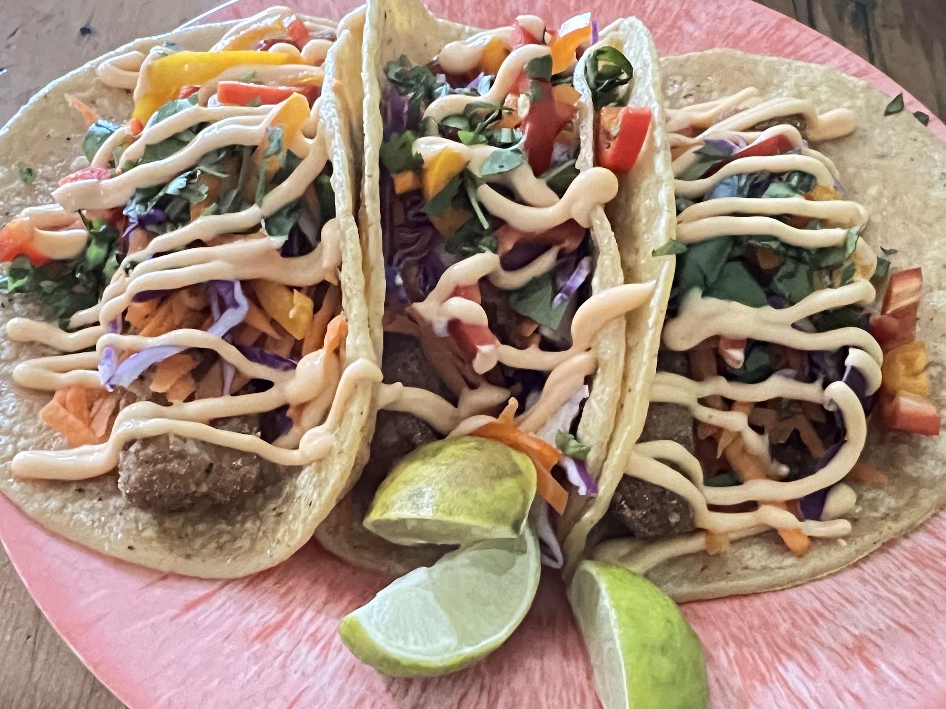 I had the Fish Tacos actually made into a wrap and it was amazing. The green spinach wrap was neatly rolled over some white rice, tasty peppers and vegan fish. The DRESSING on it was beyond tasty.