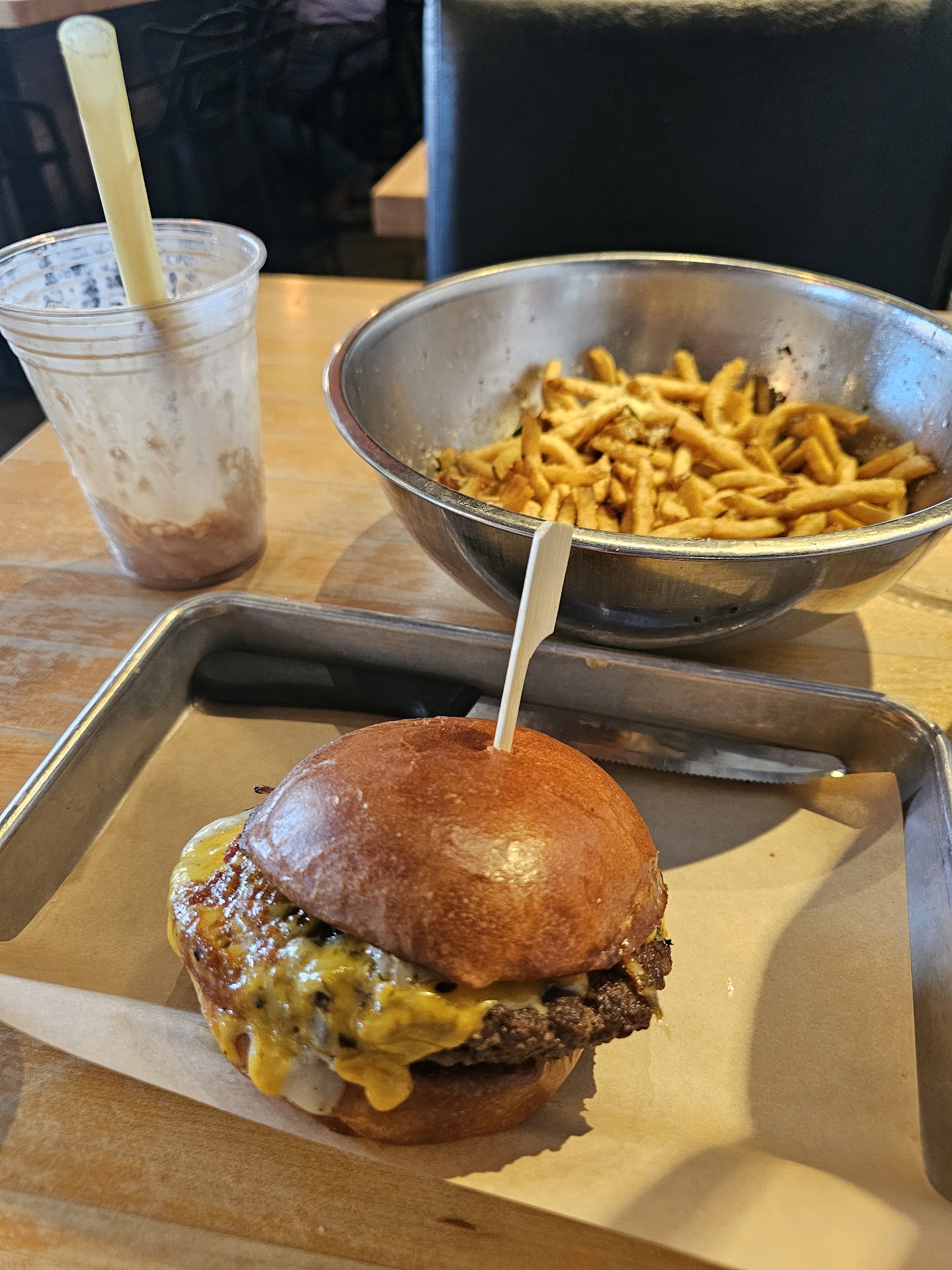 First, I'll say going to the restaurant is a far better option than ordering it to be delivered. I emphasize... Avoid delivery if you can!!! Keep in mind that you're paying a premium price for a gourmet/trendy burger experience that can be completely ruined by a clamshell and 10 minutes worth of travel. The shake and fries are not really meant to "wait".