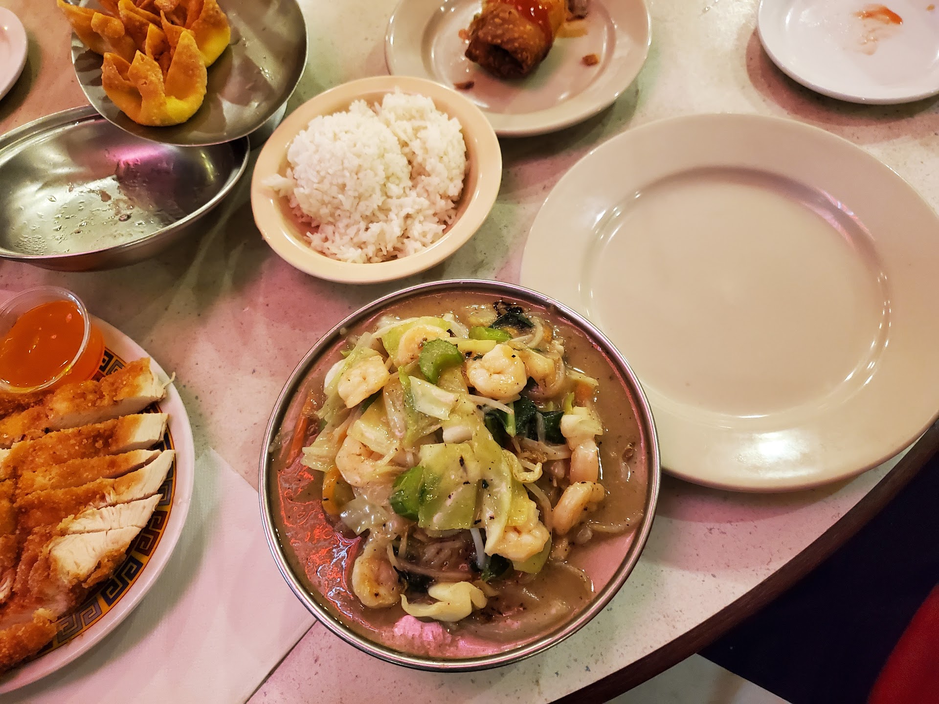 Shrimp Chop Suey is usually a hit. This time around all you could taste was salt. It usually comes with fried noodles but not this time. I am guessing it is an extra charge. We did as for some but never got any.