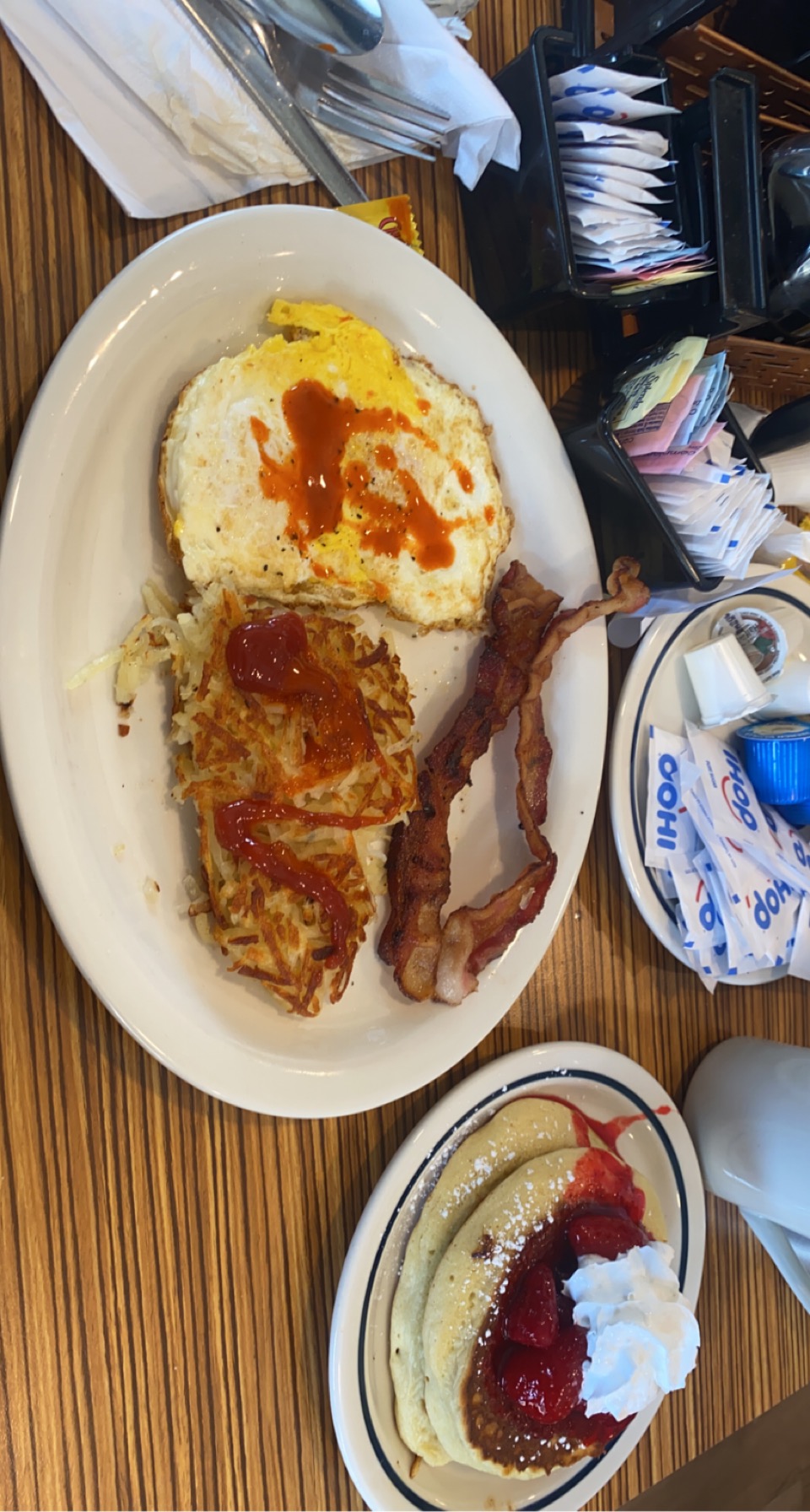 Read moreMy first negative review. I had an online order, received the notification to pick it up at 11:02 and I marked "on the way" from app like you can, get there they had no record of it, but money was pulled from my account and I had an order number. We waited 10 mins before being assisted first bad sign, then no order found. Next we continue to wait for assistance after no order found , then it was like no one could, or wanted to assist since they couldn't find the order. No accountability what so ever. A quick pick up order for 11:02p had us waiting just to be ignored, or pushed off until at 11:58p. Mind you the meal was paid for and proof provided but they still could not find order. Okay fine after 30 mins now, no kind of customer service provided ni offer to make food, nada. Just rude and ignored, pushed off service. Had one super rude server, no help. Manager no help he's yelling because he had to be called to front...Literally yelling Barely spoke and said we" we fired a cook, working on it" then just walked away. Waited to no avail, no food, no service but they have my $55. Manager never comes back server was informed to release me call corporate from the yelling person in back of restraunt. The only person to help and at least give me assistance on how to get in contact with corporate number to get my refund, because still no food or option to make it, was Cassie. She a fill-in, that's not her location she works somewhere else, which you could tell since she had great customer service skills and professionalism. Cassie had to call another store for the number they didn't have it there. This place has gone down, customer service, food, presentation and it has been my IHOP for over 10 yrs I use to love the folks. My...