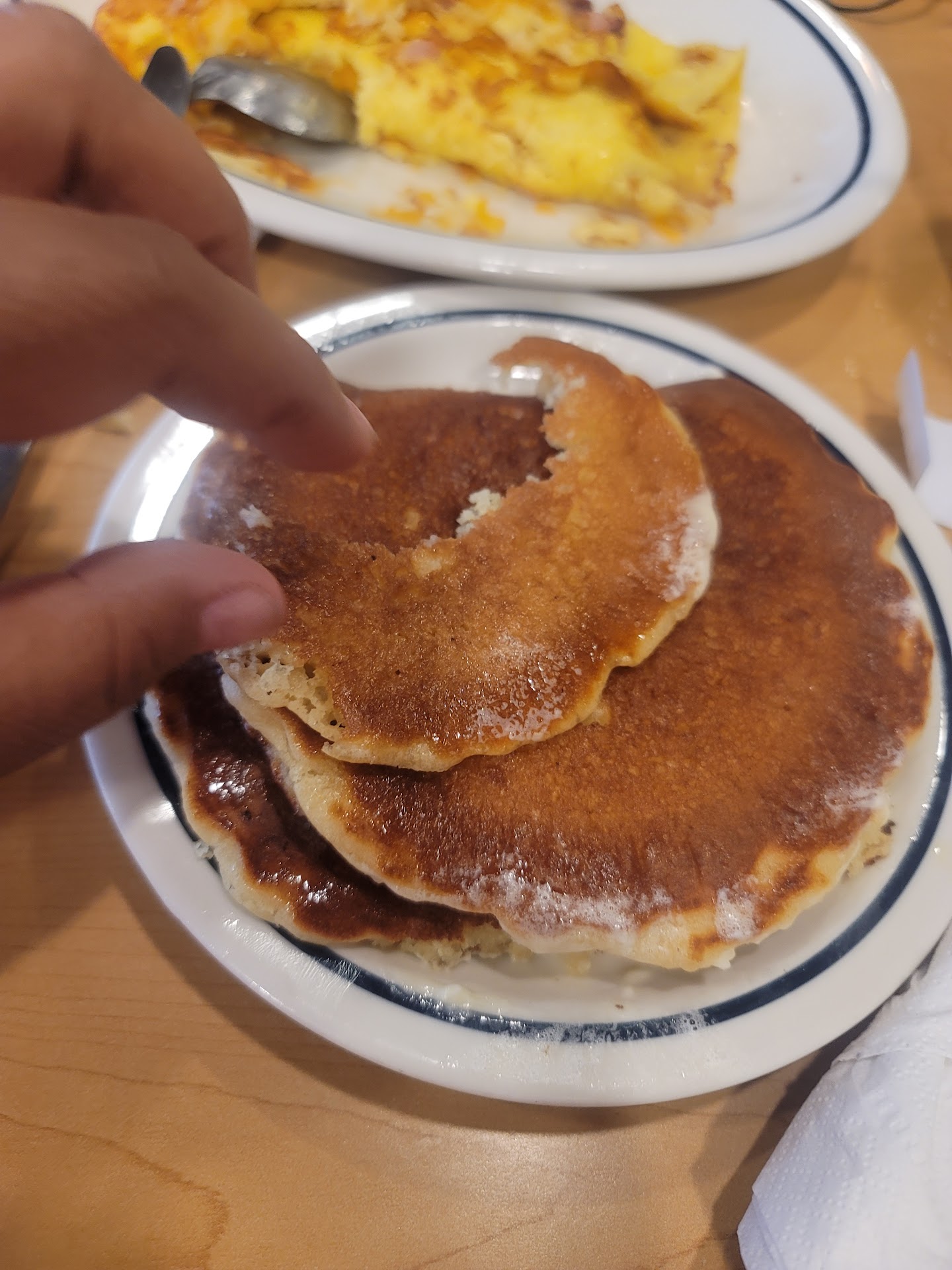 Esther Reyes We had a very bad experience 2/27/21. when we got there @ 5 pm . There was a small family there only.and then us . waited for the waitress to come get our drink order. about 10 min pass.then she comes and takes dink order . we ordered 2 pepsi.. then 15 min past and waitress come and gets our food order. i ordered from the $6.00 menu the ham & cheese omelette /pancakes.. my husband ordered the Chicken tenders / pancakes. waited for 20 min till our order came, the omelette was dry over cook i didn't get my pancakes , waitress said it didn't come with plate. a sort wait and the waitress comes back and say my plate does come with pancakes. and she would bring them out. Tenders plate was okay. It is already 5:45 and still haven't gotten my pancakes. waitress comes to the table and refill glasses.It was already going to be 6 pm. I go to the counter to pay, and still had to wait for the cashier to come..Then they finally come and i get no receipt of how much it is. but she tells me it was $19.45. I said even though i didn't get my pancakes she said yes. I said why and i getting charged for it. and why did t take so long to even get service and our food , her response was we have no cook, and they were short staffed. She should have let the customers know about the situation. then maybe we would have made a decision whether to stay or go. We were very disappointed with the out...