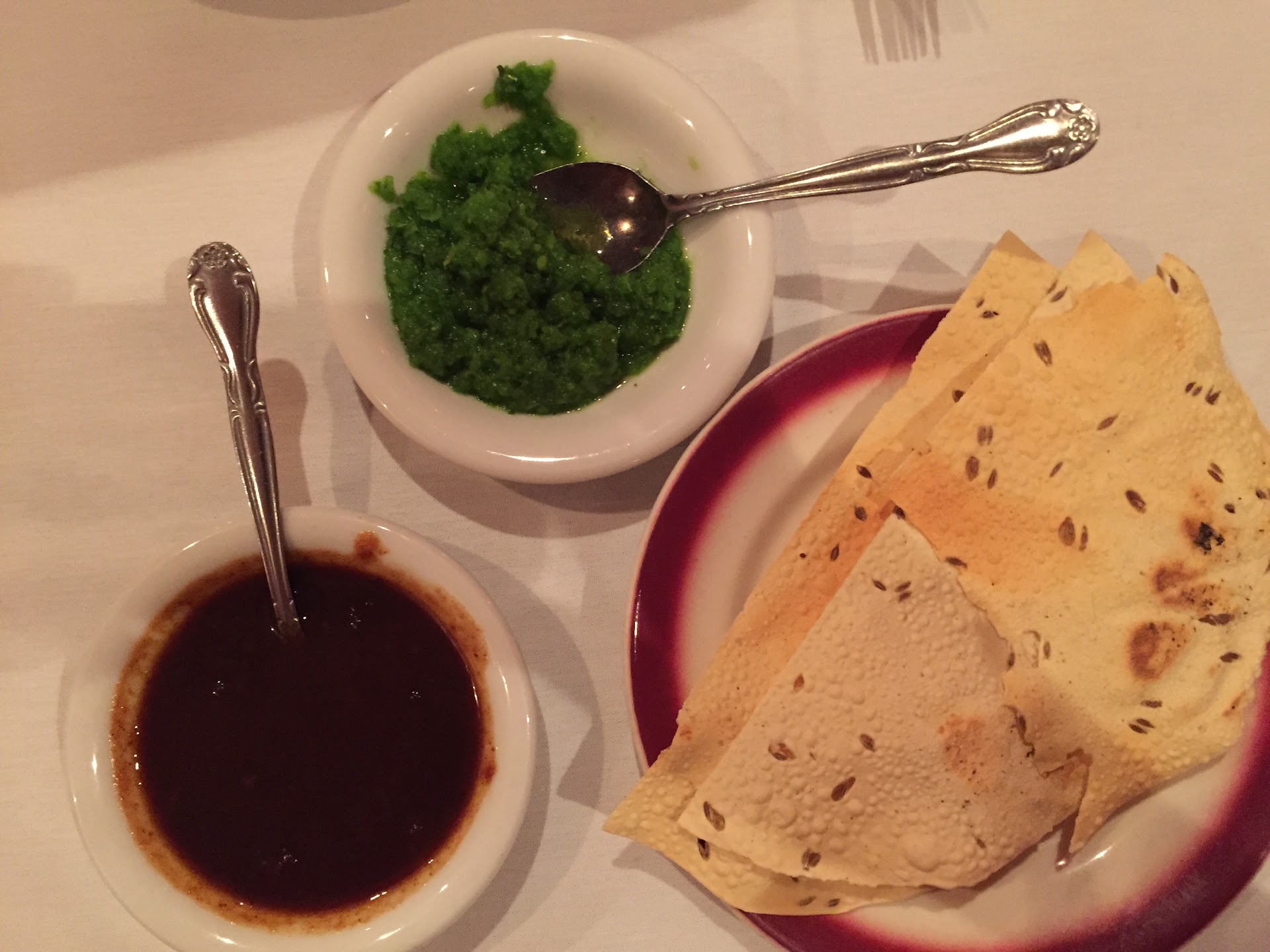 Upon entering the restaurant, we were warmly greeted by the staff who promptly showed us to our table. To start off, they kindly served us complimentary papadum along with two types of chutney: mint and tamarind. The mint chutney had a pleasant kick of spiciness, which I enjoyed, while the tamarind chutney offered a tangy and sweet flavor. Both chutneys were delicious.