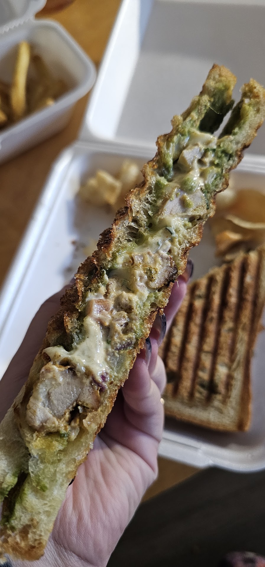 I ordered the Grilled Chicken Tikka Sandwich and regular fries, and both were fantastic. The sandwich was a delicious panini-style creation with hearty, well-toasted bread that stayed perfectly crispâeven after the drive home in a to-go container. Every bite was packed with flavor!