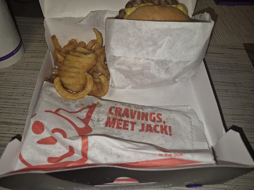 Read moreHi again im back after almost 3 yrs and again i tried giving jack another chance... and again my tacos were old and greasy this time i asked for extra cheese and instead got old tacos i have moved residence since then and live 15 min away, my sister lives close by and i was craving the good jack in the box tacos so we decided to stop AGAIN then to get home and not have those tacos the way i was expecting. Then i drive back so thats another 15 min back just to get told sorry we will make your food again had me waiting for another 10 min with no food and no money back. I work in the fast food industry and the least we can do when things like this happen is refund the food and remake the food for the inconvenience. It wasnt my fault you guys messed up to begin with so i have to spend my money on gas to get my order fixed because you messed up my order ..... umm how is that fair so there i end up losing money. People dont even waist your time coming here its a dirty restaurant and they really don't care about their customers. The manager even had to call the GM to be able to refund me the 2 orders of tacos and onion rings and thats because i took them back so they could see how nasty and old the tacos were. Imagine if the GM wouldnt of answered....//////// Tacos were stalle, both tacos and egg rolls tasted burnt like if the oil hadn't been clean in days. Hadn't eaten at Jack in the box since 4 years ago when I stopped working for one. I went to try this one close to home as I just got off from work and now I know why I do not eat at Jack. Employees here really don't care about anything, and I think that should be sometging the General Manager needs to fix because the kitchen looked dirty I had 15 minutes to observe it from the DT window since thats how long it took me to get my 2 tacos only cheese and my 3 pc egg rolls which take like 3 minutesand something. Fryers were dirty Employees had shirt tucked out, hat backwards just walking around like nothing to do, DT menu boards were so dirty and were crooked. I worked for Jack in the box 15 years was a GM for 7 years running 6 stores and even with very little time my restaurants would never look like this one and my employees had to follow the ...
